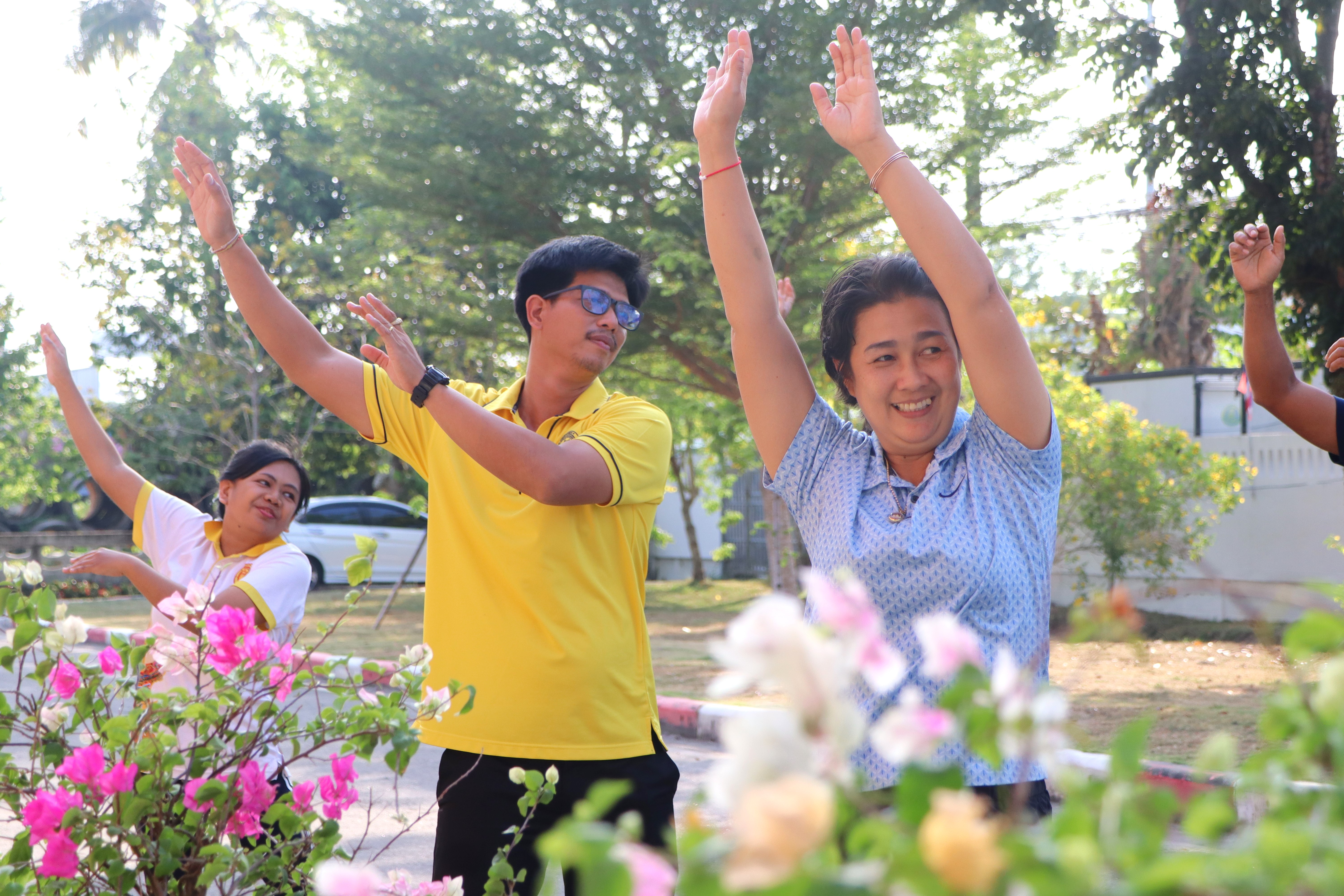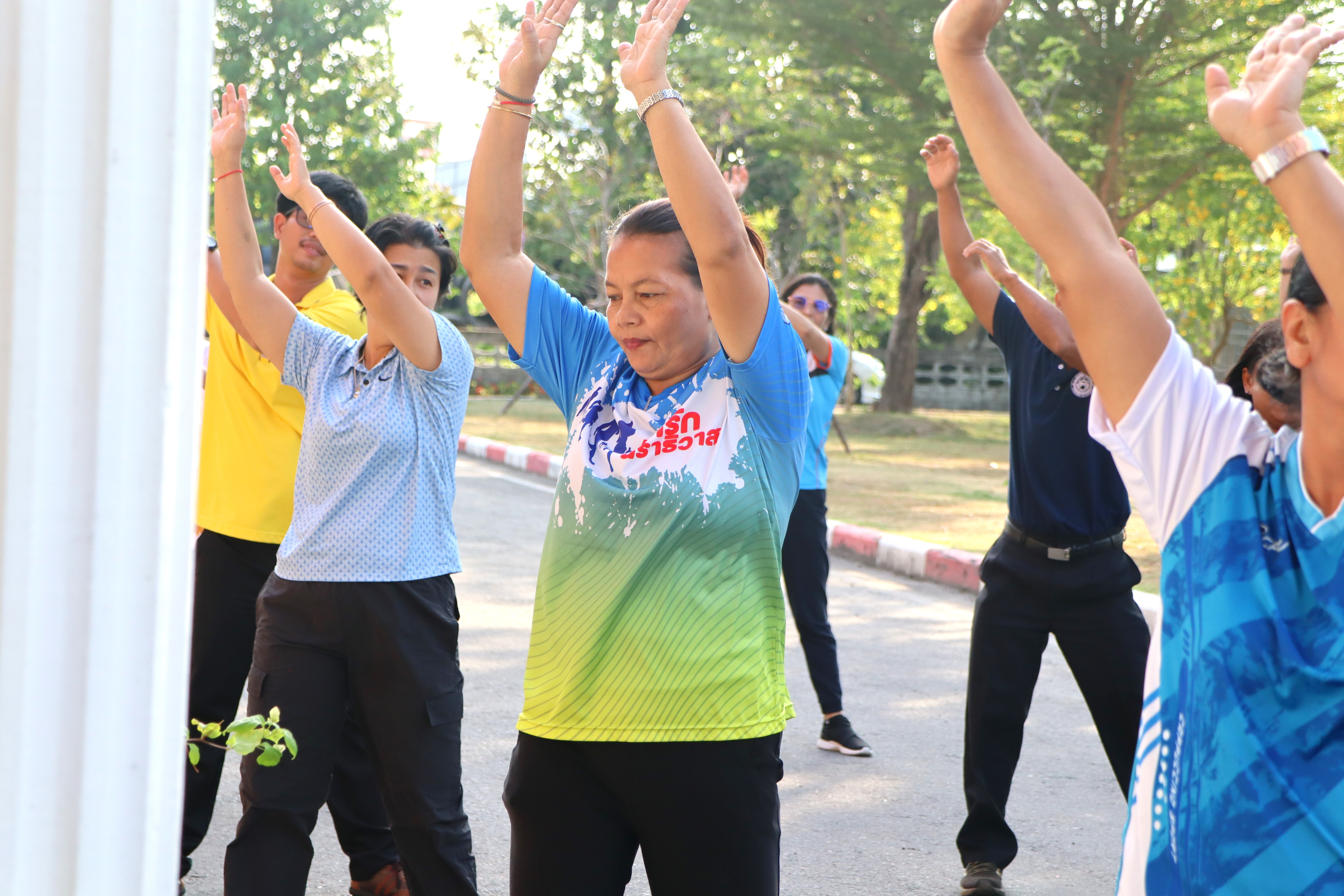 ร่วมกิจกรรมการออกกำลังกายทุกวันพุธตามนโยบายขับเคลื่อนการส่งเสริมและพัฒนาการออกกำลังกาย และกีฬาเพื่อมวลชนให้เป็นวิถีชีวิต