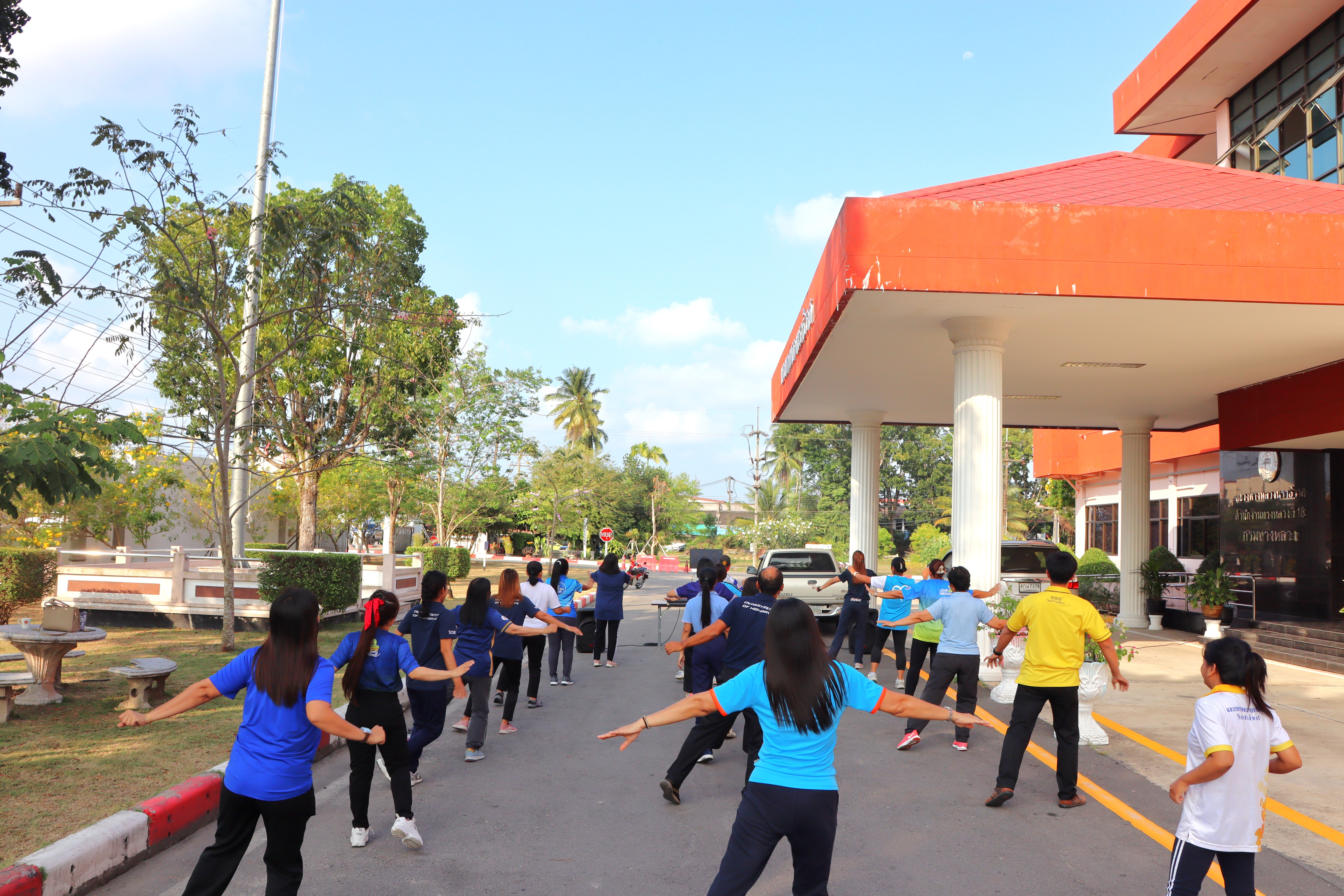 นายจอมปวีร์ จันทร์หิรัญ ผู้อำนวยการสำนักงานทางหลวงที่ 18 รักษาราชการแทน ผู้อำนวยการแขวงทางหลวงนราธิวาส มอบหมายให้นางอรัญญา เพ็ชรพูล รองผู้อำนวยการแขวงทางหลวงนราธิวาส ฝ่ายบริหาร นำข้าราชการ และเจ้าหน้าที่ในสังกัด ร่วมกิจกรรมการออกกำลังกายทุกวันพุธตามนโยบายขับเคลื่อนการส่งเสริมและพัฒนาการออกกำลังกาย และกีฬาเพื่อมวลชนให้เป็นวิถีชีวิต ณ บริเวณหน้าอาคารสำนักงานแขวงทางหลวงนราธิวาส เพื่อเป็นการเสริมสร้าง ให้บุคลากรมีสุขภาพพลานามัยที่ดี ทำให้สามารถปฏิบัติภารกิจหน้าที่ราชการได้อย่างมีประสิทธิภาพ