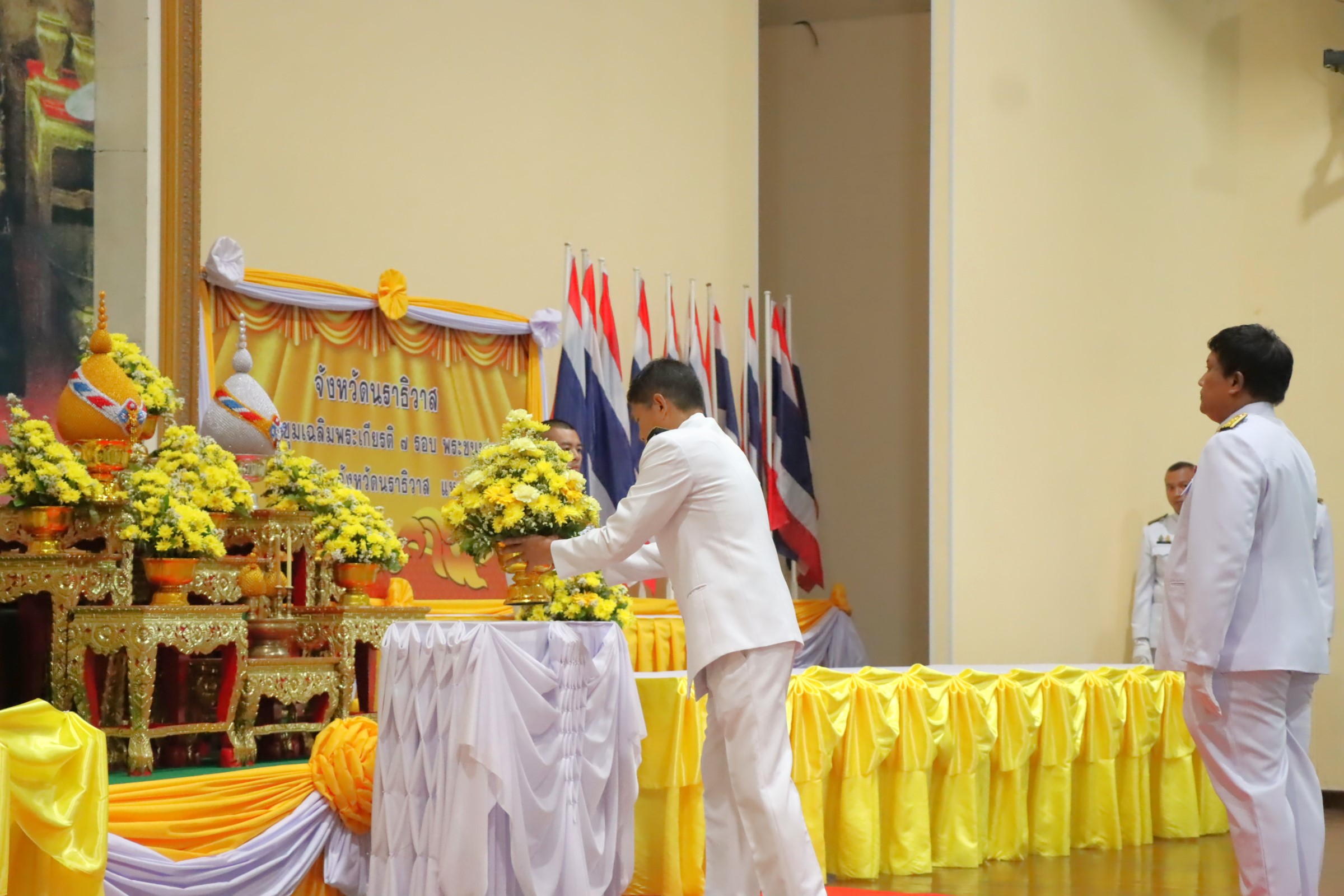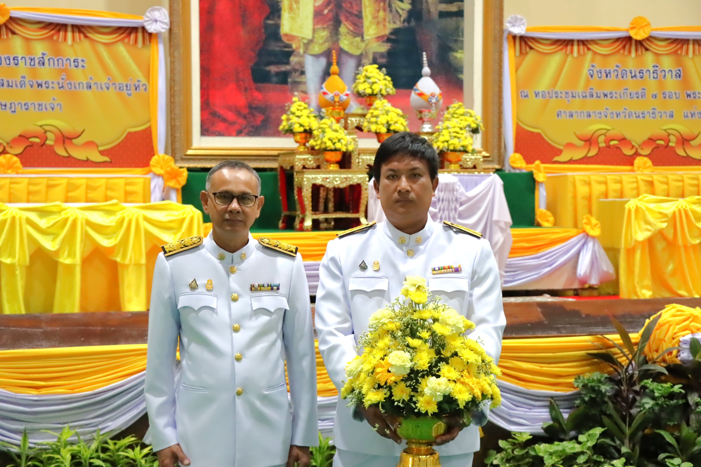 นายจอมปวีร์ จันทร์หิรัญ ผู้อำนวยการสำนักงานทางหลวงที่ 18 รักษาราชการแทน ผู้อำนวยการแขวงทางหลวงนราธิวาส มอบหมายให้นายจำลอง จันสุข รองผู้อำนวยการแขวงทางหลวงนราธิวาส (ฝ่ายปฏิบัติการ) และนายนิรันดร์ โสตติมานนท์ นายช่างโยธาชำนาญงาน รักษาการในตำแหน่ง หัวหน้าหมวดทางหลวงตากใบ ร่วมพิธีถวายเครื่องราชสักการะพานพุ่มดอกไม้สด เนื่องในวันที่ระลึกพระบาทสมเด็จพระนั่งเกล้าเจ้าอยู่หัว พระมหาเจษฎาราชเจ้า ณ หอประชุมเฉลิมพระเกียรติ 7 รอบ พระชนมพรรษา ศาลากลางจังหวัดนราธิวาส แห่งที่ 1 โดยมี ว่าที่ร้อยตรี ตระกูล โทธรรม ผู้ว่าราชการจังหวัดนราธิวาส เป็นประธานในพิธี พร้อมด้วยส่วนราชการเข้าร่วมพิธีดังกล่าวฯ