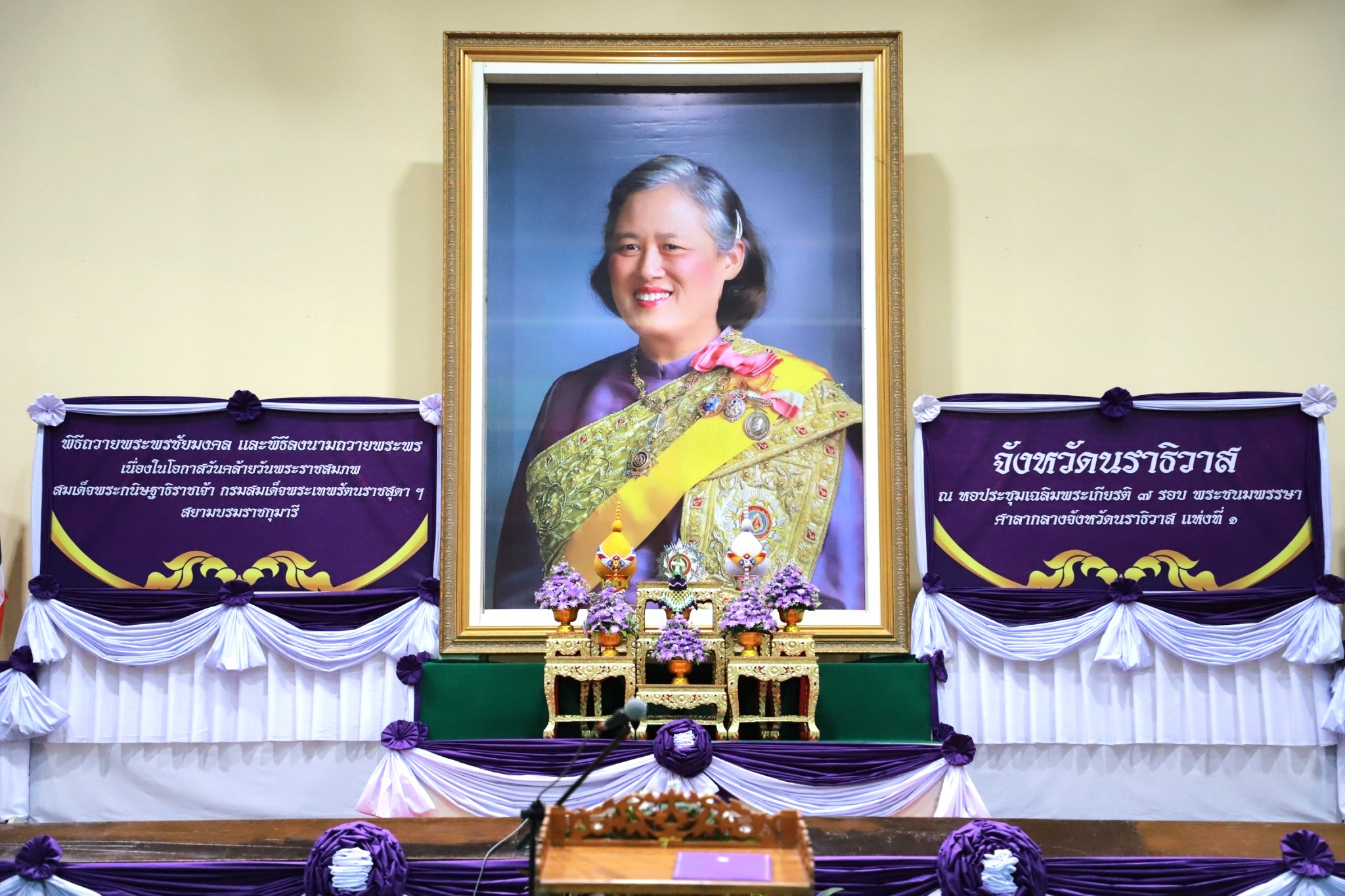 นายจอมปวีร์ จันทร์หิรัญ ผู้อำนวยการสำนักงานทางหลวงที่ 18 รักษาราชการแทน ผู้อำนวยการแขวงทางหลวงนราธิวาส มอบหมายให้นางอรัญญา เพ็ชรพูล รองผู้อำนวยการแขวงทางหลวงนราธิวาส (ฝ่ายบริหาร) ร่วมพิธีเนื่องในโอกาสวันคล้ายวันพระราชสมภพ สมเด็จพระกนิษฐาธิราชเจ้า กรมสมเด็จพระเทพรัตนราชสุดาฯ สยามบรมราชกุมารี และร่วมพิธีลงนามถวายพระพร ณ หอประชุมเฉลิมพระเกียรติ 7 รอบ พระชนมพรรษา ศาลากลางจังหวัดนราธิวาส (แห่งที่ 1) ต.ลำภู อ.เมืองนราธิวาส จ.นราธิวาสโดยมีว่าที่ร้อยตรี ตระกูล โทธรรม ผู้ว่าราชการจังหวัดนราธิวาส เป็นประธานในพิธี พร้อมด้วยส่วนราชการเข้าร่วมพิธีดังกล่าว