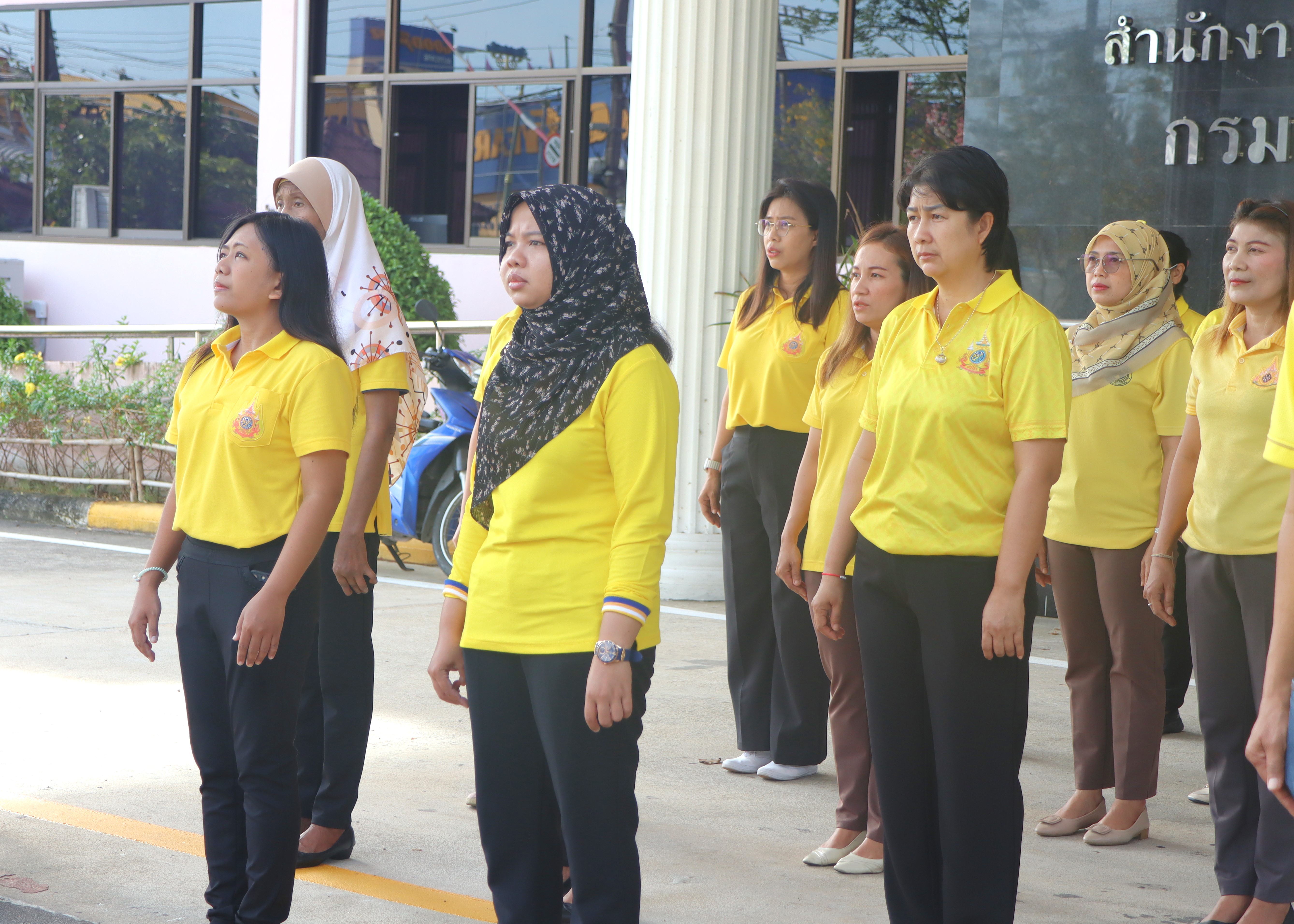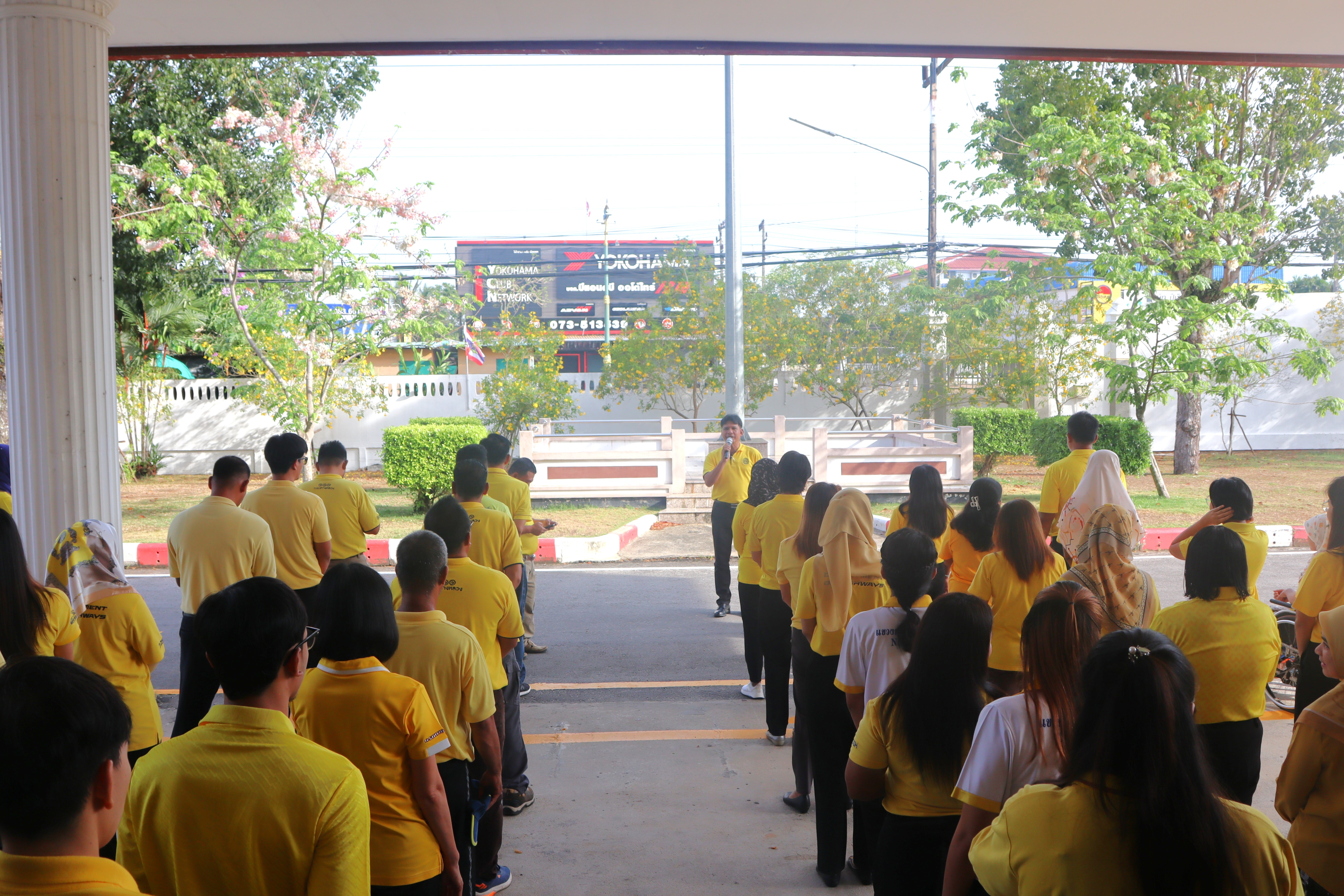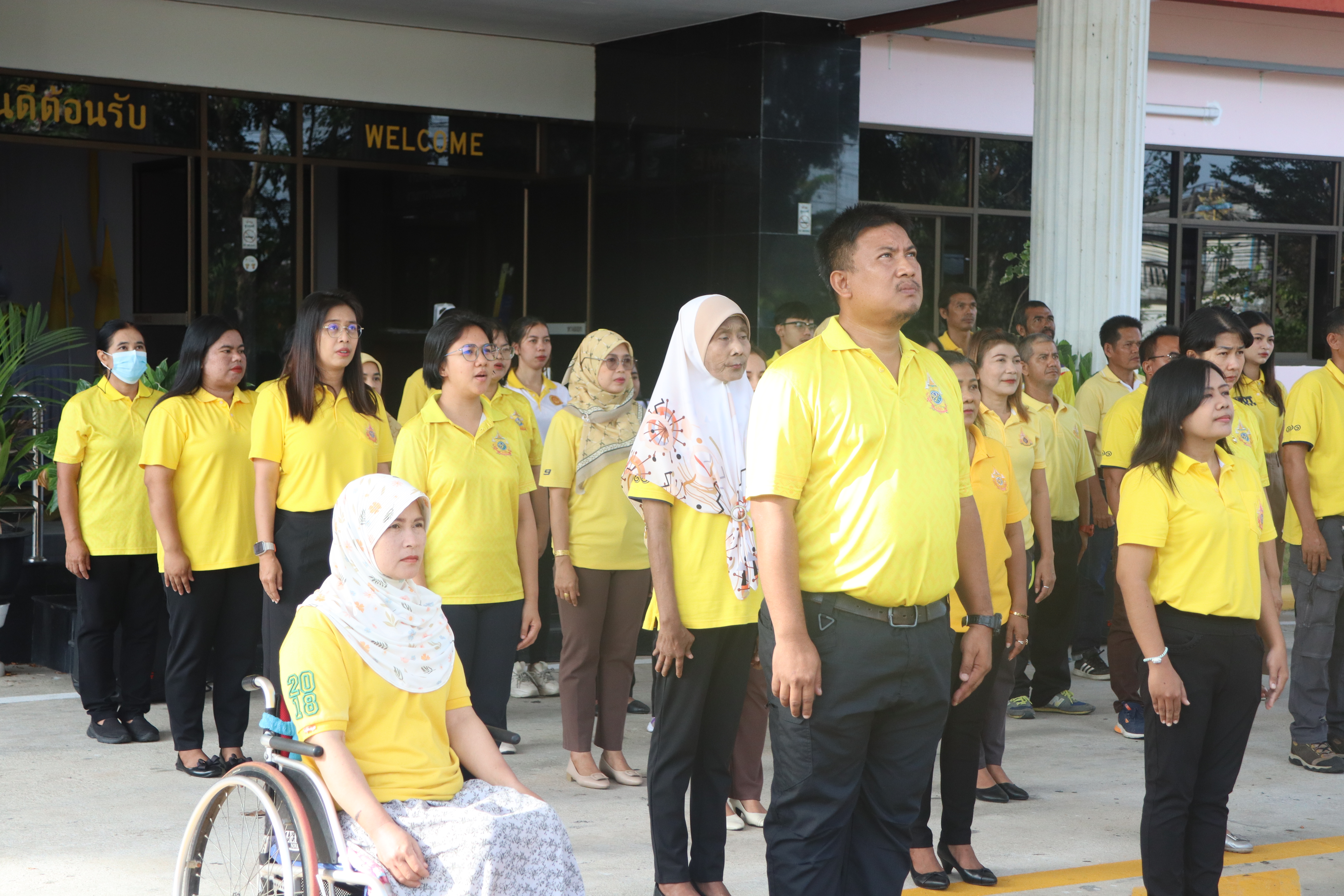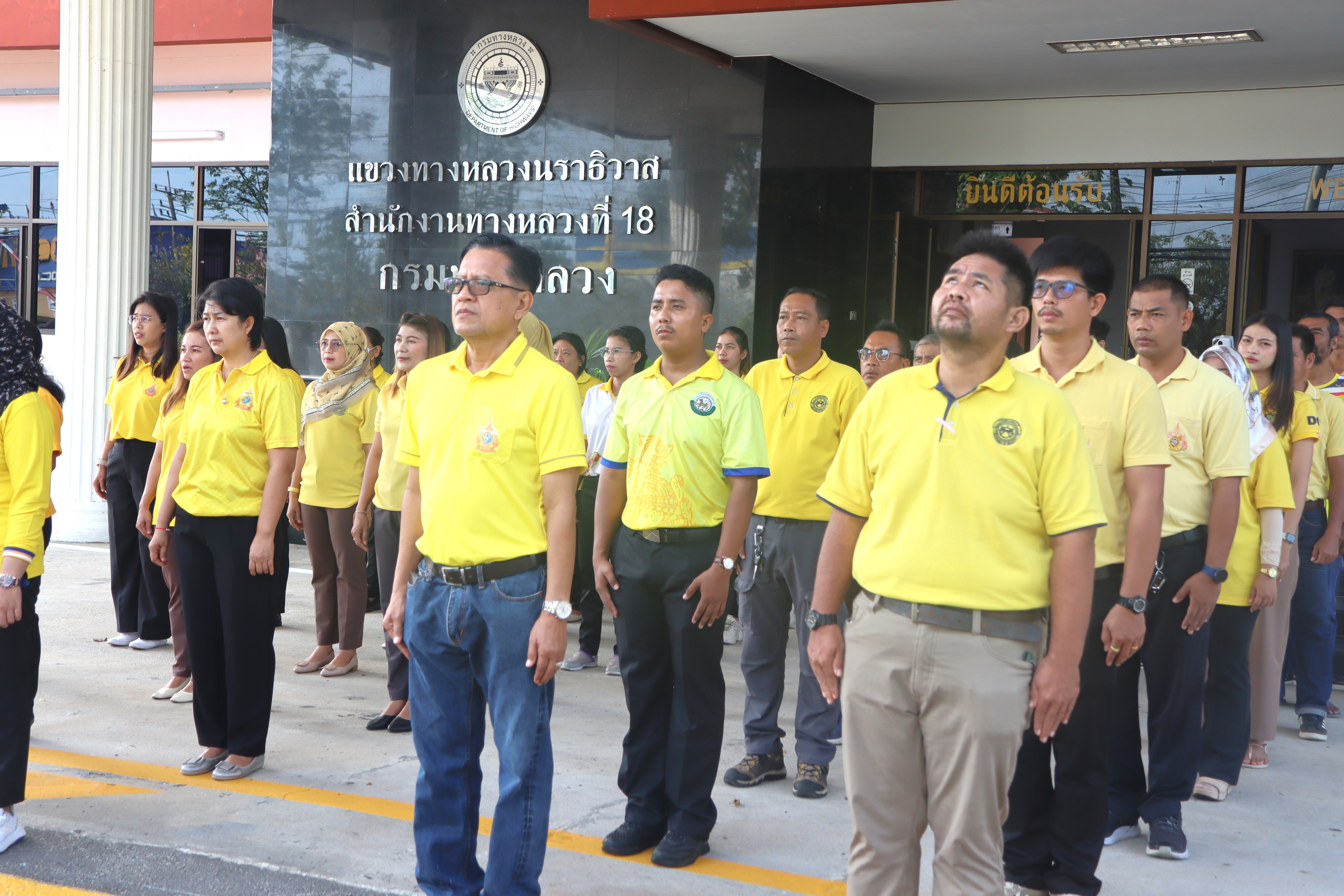 นายปฏิเวชวุฒิศักย์ สุขขี ผู้อำนวยการแขวงทางหลวงนราธิวาส มอบหมายให้รองผู้อำนวยการแขวงทางหลวงนราธิวาส ฝ่ายปฏิบัติการ ฝ่ายวิศวกรรม ผู้อำนวยการหมวดทางหลวงอาวุโสนราธิวาส นำข้าราชการ และเจ้าหน้าที่แขวงทางหลวงนราธิวาส ร่วมกิจกรรมเข้าแถวเคารพธงชาติ โดยร่วมแต่งกายด้วยเสื้อสีเหลืองเพื่อเฉลิมพระเกียรติพระบาทสมเด็จพระเจ้าอยู่หัว เนื่องในโอกาสมหามงคลเฉลิมพระชนมพรรษา 6 รอบ 28 กรกฏาคม 2567 และเพื่อเสริมสร้างจิตสำนึกต่อสถาบันชาติ ศาสนา พระมหากษัตริย์ และการเป็นข้าราชการที่ดี เพื่อแสดงออกถึงความจงรักภักดีต่อชาติ ศาสนา พระมหากษัตริย์ และเป็นการเตรียมความพร้อมในการปฏิบัติราชการอีกทั้งยังเป็นการเพิ่มประสิทธิภาพในการทำงานเสริมสร้างความรัก ความสามัคคีในองค์กร