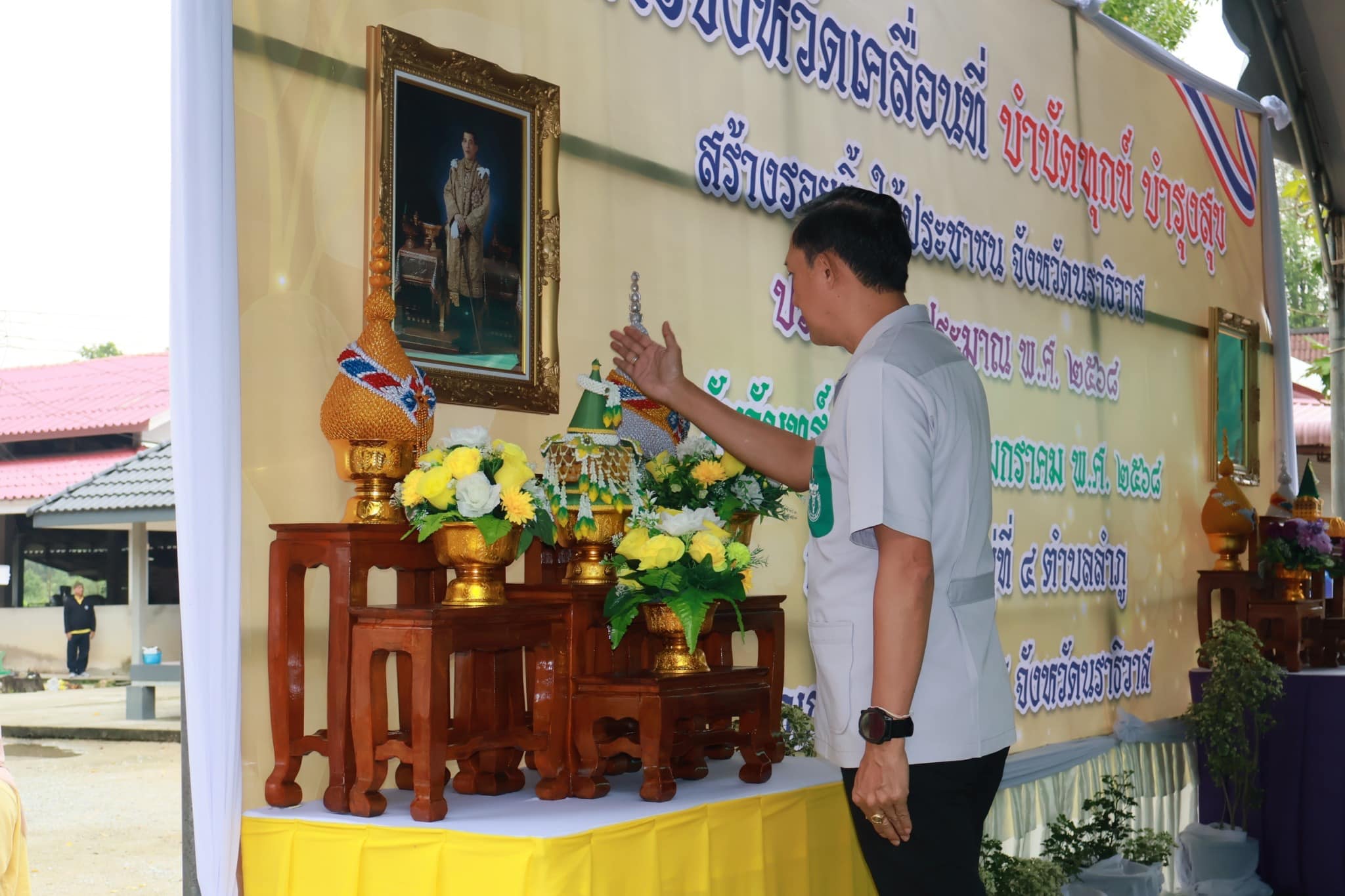 นายปฏิเวชวุฒิศักย์ สุขขี ผู้อำนวยการแขวงทางหลวงนราธิวาส มอบหมายให้นายกูซัมรี ภูผาภักดี นายช่างโยธาชำนาญงาน พร้อมด้วยเจ้าหน้าที่หมวดทางหลวงนราธิวาส เข้าร่วมโครงการจังหวัดเคลื่อนที่บำบัดทุกข์ บำรุงสุข สร้างรอยยิ้มให้ประชาชน จังหวัดนราธิวาส ณ วัดโคกโก ม. 4 ต.ลำภู อ.เมืองนราธิวาส จ.นราธิวาส โดยมีว่าที่ร้อยตรี ตระกูล โทธรรม ผู้ว่าราชการจังหวัดนราธิวาส เป็นประธานในพิธี พร้อมด้วย ส่วนราชการ ประชาชน นักเรียน เข้าร่วมกิจกรรมดังกล่าว