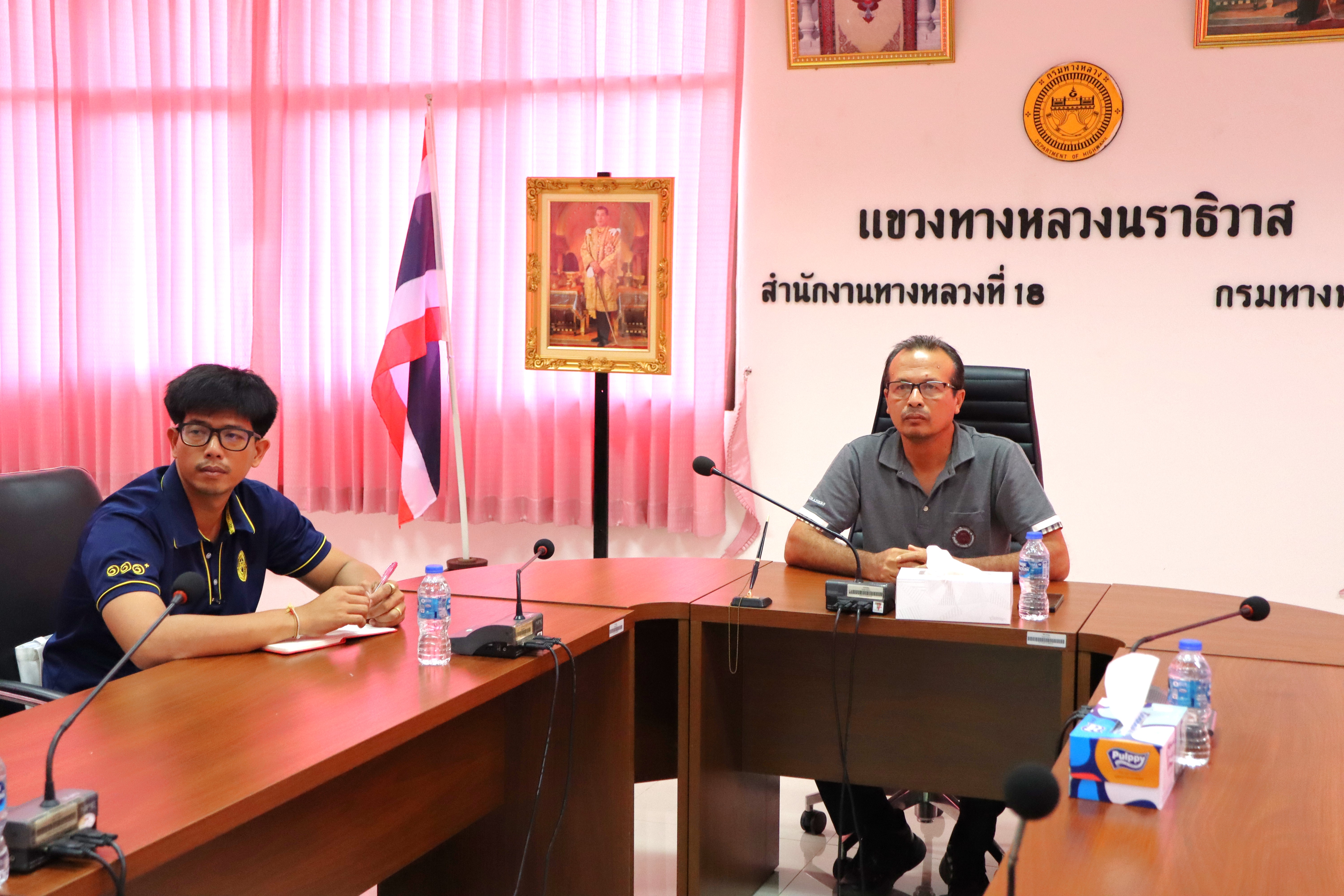 นายจอมปวีร์ จันทร์หิรัญ ผู้อำนวยการสำนักงานทางหลวงที่ 18 รักษาราชการแทน ผู้อำนวยการแขวงทางหลวงนราธิวาส มอบหมายให้นายชัยยุทธ บรรดาศักดิ์ นายช่างเครื่องกลปฏิบัติงาน และเจ้าหน้าที่เงินทุนหมุนเวียนฯ พร้อมด้วยนายสาโรจน์ ขุนจันทร์ ผู้อำนวยการส่วนเครื่องกล สำนักงานทางหลวงที่ 18 ร่วมประชุมตัวแทนเงินทุนหมุนเวียน ระดับ PS และวิศวกรแผนงาน (เครื่องกล) เพื่อติดตามผลการดำเนินงานเงินทุนหมุนเวียน แผน-ผลรายได้ค่าเช่า แผน-ผล การขายทอดตลาด และเรื่องอื่นๆ ที่เกี่ยวข้อง ผ่านระบบ Zoom Meeting ณ ห้องประชุม ชั้น 3 แขวงทางหลวงนราธิวาส โดยมีนายนพคุณ สว่างไสว ผู้อำนวยการสำนักเครื่องกลและสื่อสาร กรมทางหลวงเป็นประธานในการประชุม