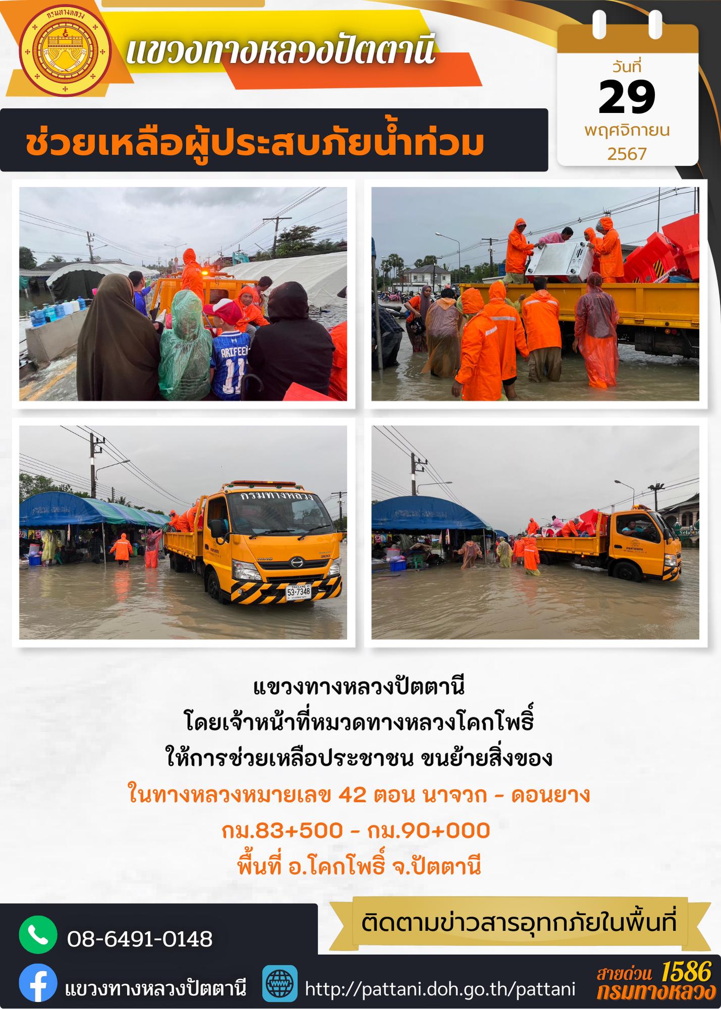 แขวงทางหลวงปัตตานี ให้ความช่วยเหลือผู้ประสบภัยน้ำท่วม