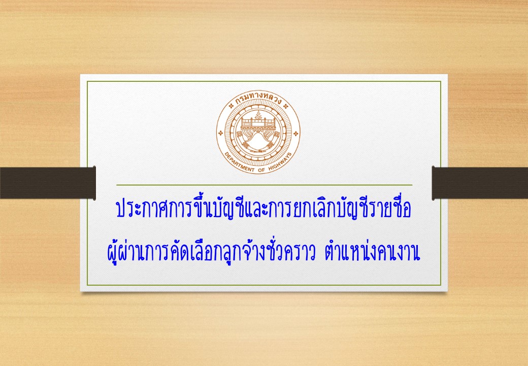 ประกาศแขวงทางหลวงปัตตานี เรื่อง การขึ้นบัญชีและการยกเลิกบัญชีรายชื่อผู้ผ่านการคัดเลือกลูกจ้างชั่วคราว ตำแหน่งคนงาน ครั้งที่ 2