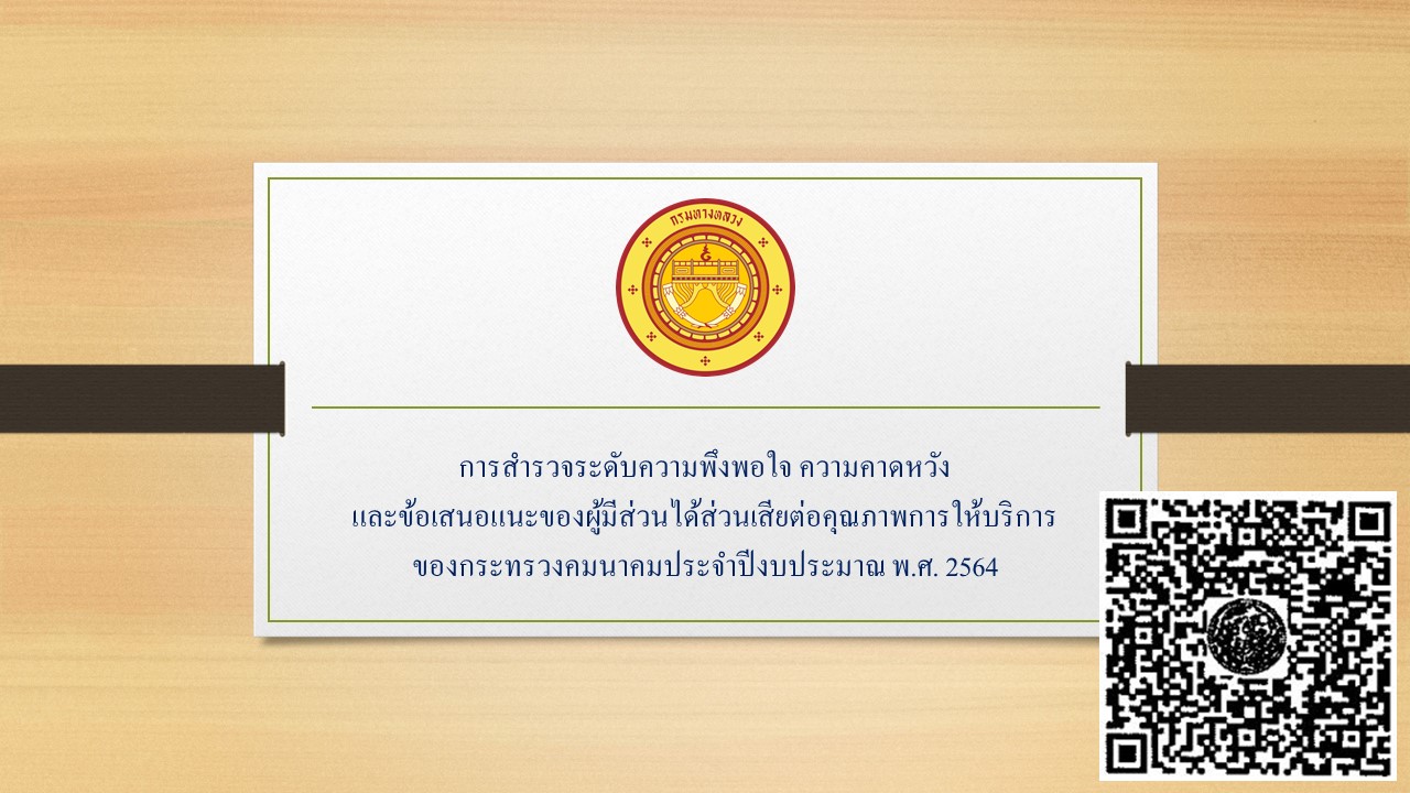 การสำรวจระดับความพึงพอใจ ความคาดหวัง และข้อเสนอแนะของผู้มีส่วนได้ส่วนเสียต่อคุณภาพการให้บริการ ของกระทรวงคมนาคมประจำปีงบประมาณ พ.ศ. 2564