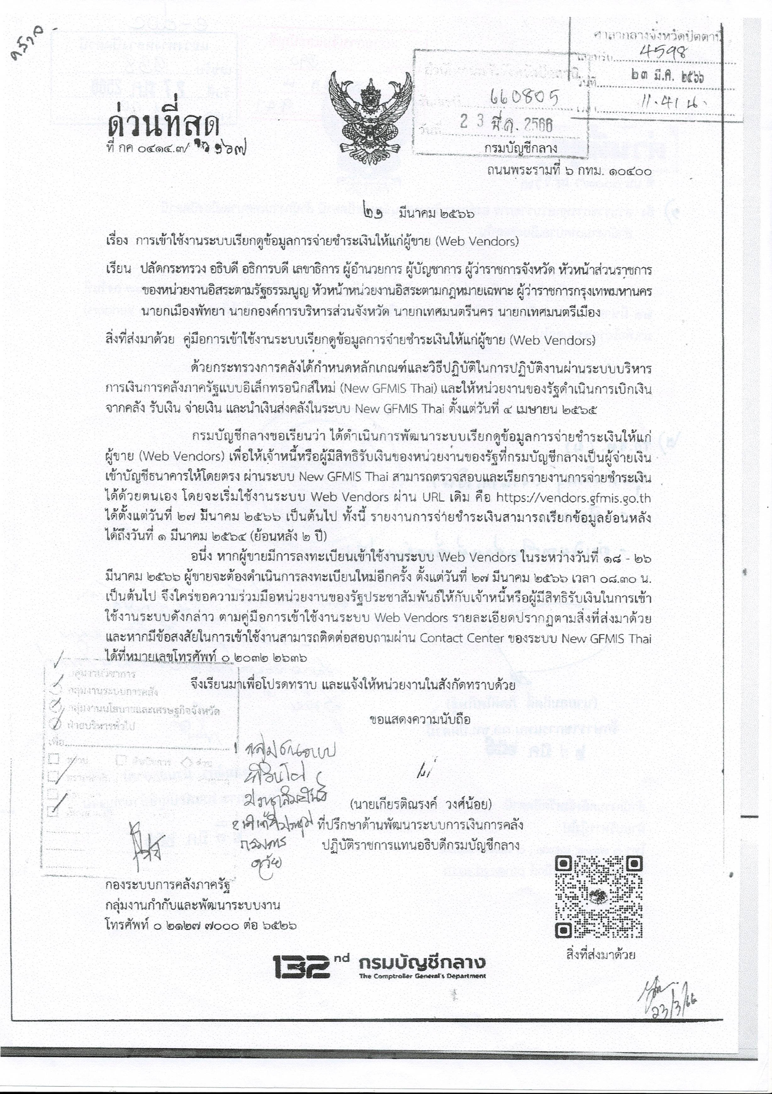 ประชาสัมพันธ์การใช้งานระบบเรียกดูข้อมูลการจ่ายชำระเงินแก่ผู้ขาย WEB VENDORS
