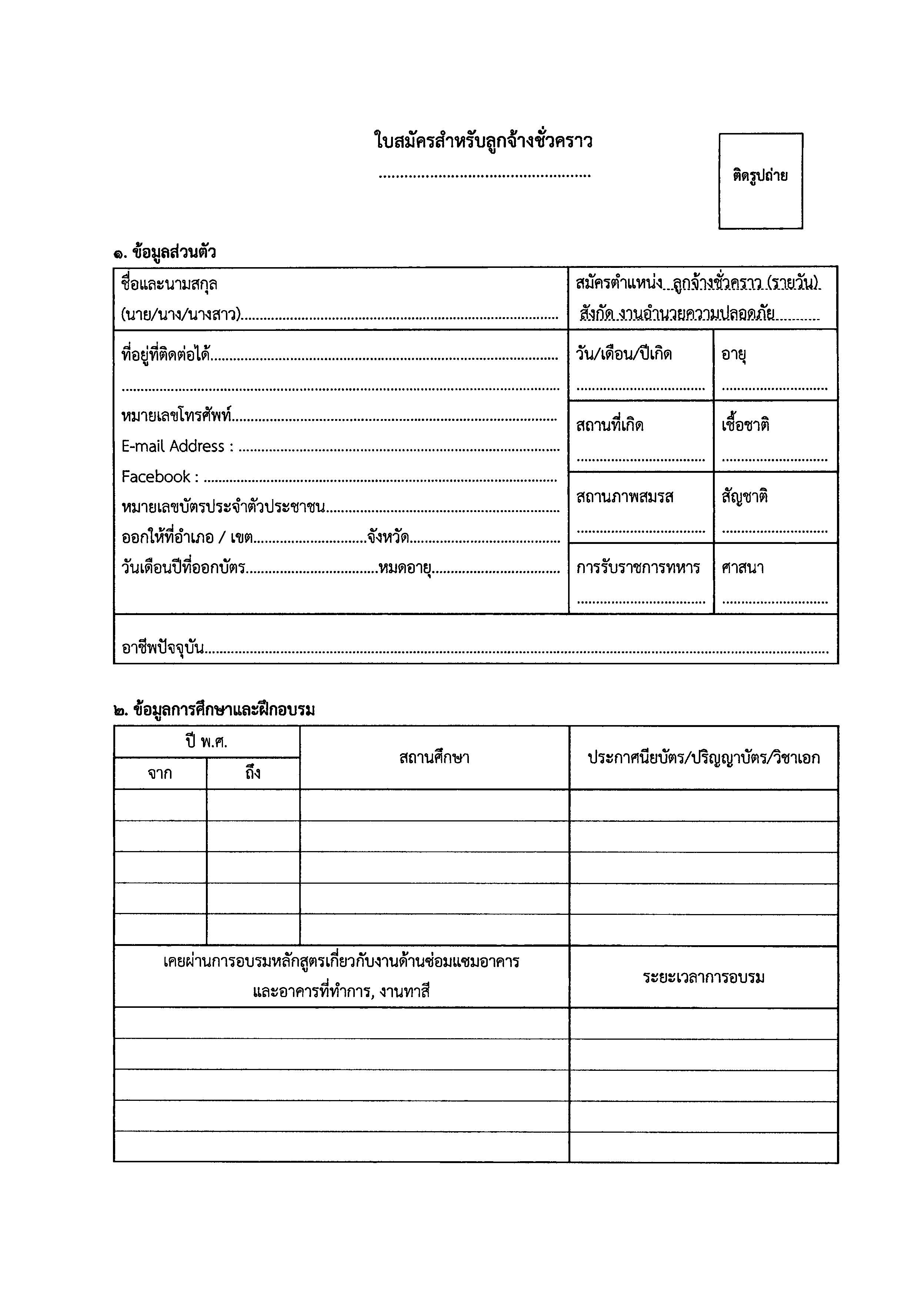 - มีความรู้ความสามารถทำงานด้านงานไม้ หรืองานเหล็ก หรืองานคอนกรีต หรืองานทาสี หรืองานช่างอื่นๆ ที่เกี่ยวข้อง