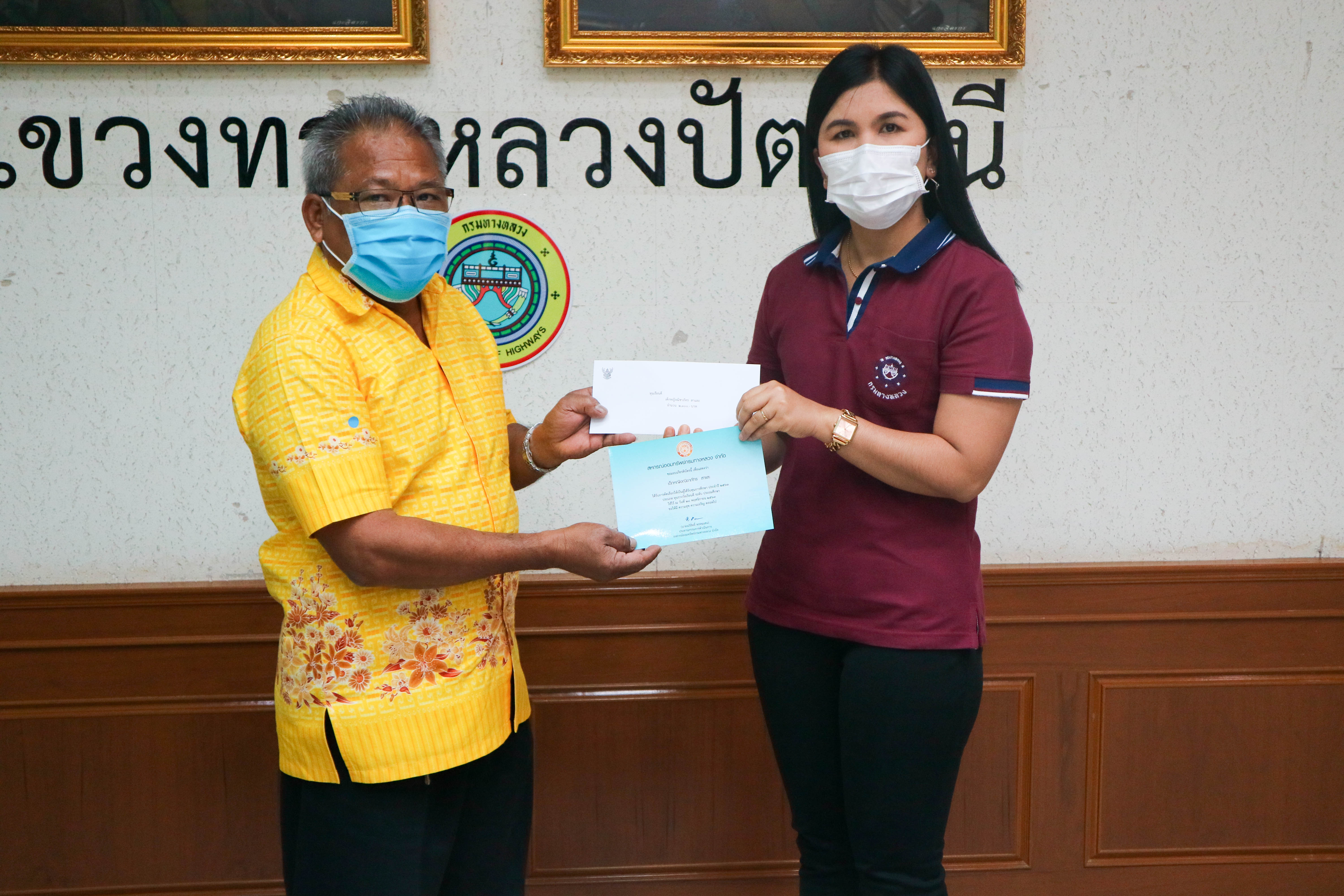 วันที่ 6 มกราคม 2563 นายสุรินทร์ แก้วคีรี ผู้อำนวยการแขวงทางหลวงปัตตานี มอบเงินสวัสดิการทุนการศึกษาบุตรสมาชิกสหกรณ์ออมทรัพย์กรมทางหลวงประจำปี 2563