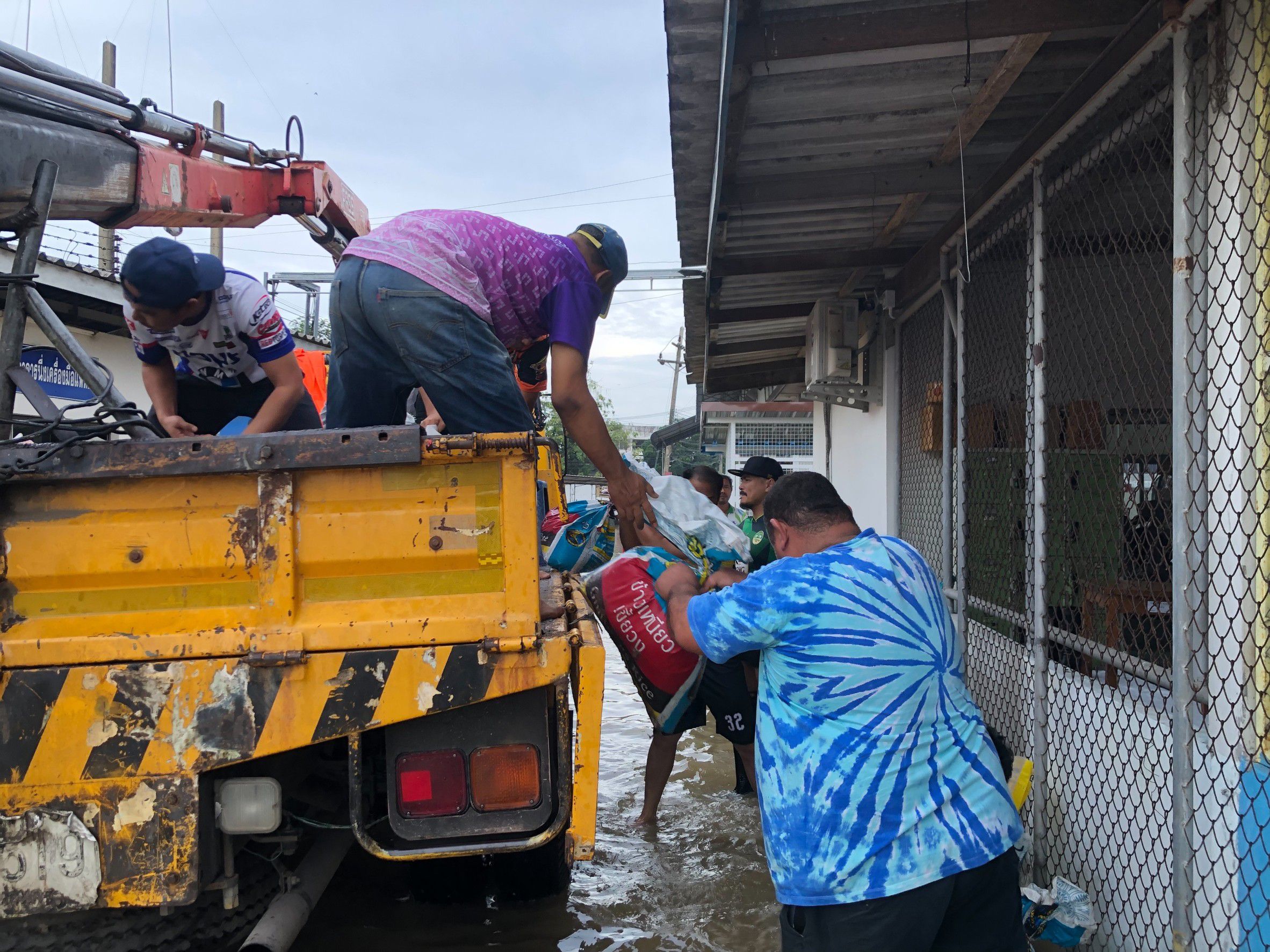 แขวงทางหลวงปัตตานี โดยนายสมัคร เลือดวงหัด ผู้อำนวยการแขวงทางหลวงปัตตานี ให้การสนับสนุนกระสอบทรายกับโรงพยาบาลปัตตานี เพื่อปิดกั้นน้ำที่จะเข้าท่วมอาคารบริการของโรงพยาบาล เนื่องจากปริมาณน้ำในพื้นที่จังหวัดปัตตานียังท่วมสูง