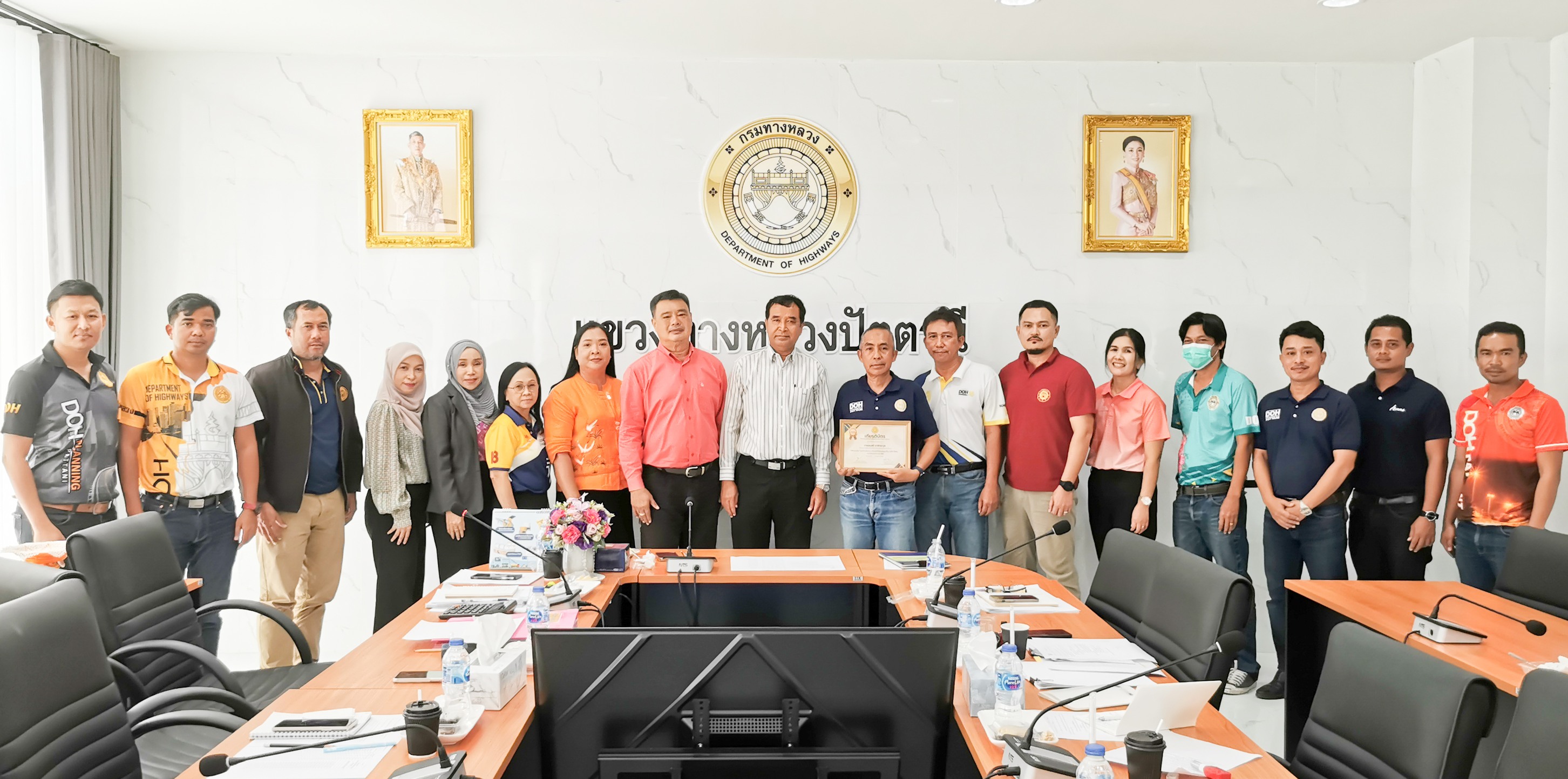 นายสมัคร เลือดวงหัด ผู้อำนวยการแขวงทางหลวงปัตตานี เป็นผู้แทนสำนักเครื่องกลและสื่อสาร กรมทางหลวง มอบเกียรติบัตร ให้กับนายอดุลย์ อาลีตระกูล ตำแหน่ง นักจัดการงานทั่วไป งานปรับซ่อม แขวงทางหลวงปัตตานี ซึ่งได้รับรางวัล “บุคลากรต้นแบบ เจ้าหน้าที่งานเงินทุนหมุนเวียน ระดับ ดีเด่น” ประจำปีงบประมาณ พ.ศ. 2567 โดยมีผู้บริหาร หัวหน้าหมวด หัวหน้างาน และข้าราชการ ร่วมแสดงความยินดี ณ ห้องประชุมแขวงทางหลวงปัตตานี ชั้น 1