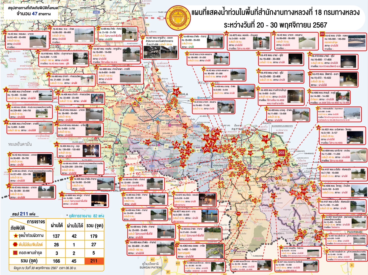 รายงานสถานการณ์น้ำท่วม ระหว่างวันที่ 20-30 พ.ย. 67 ประจำวันที่ 30 พ.ย. 67 ณ เวลา 06.30 น