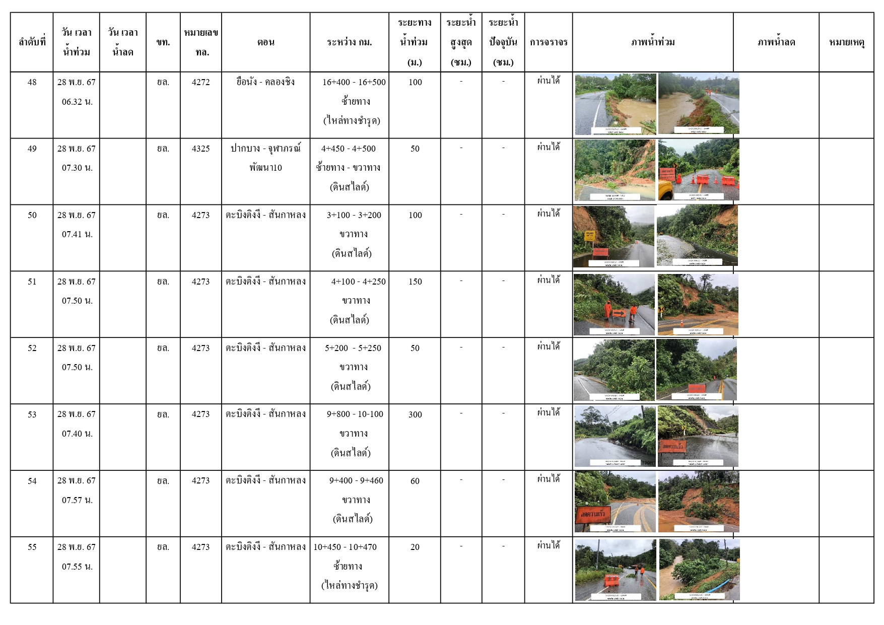 รายงานสถานการณ์น้ำท่วม หมายเลขทางหลวง 0042