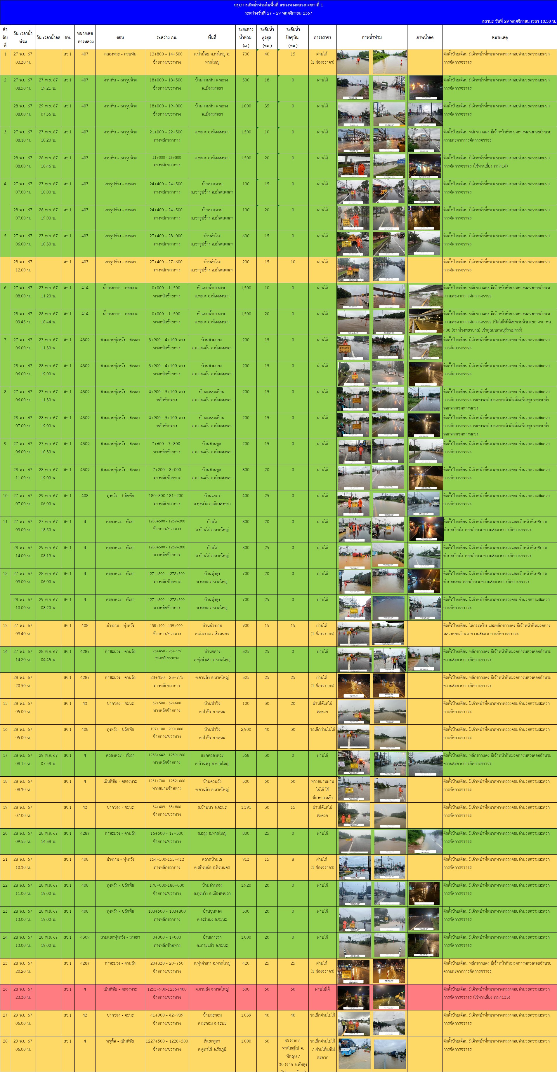 รายงานน้ำท่วมระหว่างวันที่ 20-29 พ.ย. 67 ประจำวันที่ 29 พ.ย. 67 ณ เวลา 07.00 น