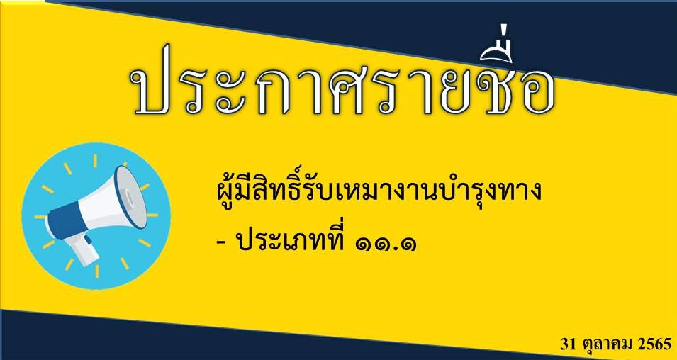 ประกาศรายชื่อผู้มีสิทธิ์รับเหมางานบำรุงทาง ประเภทที่ ๑๑.๑