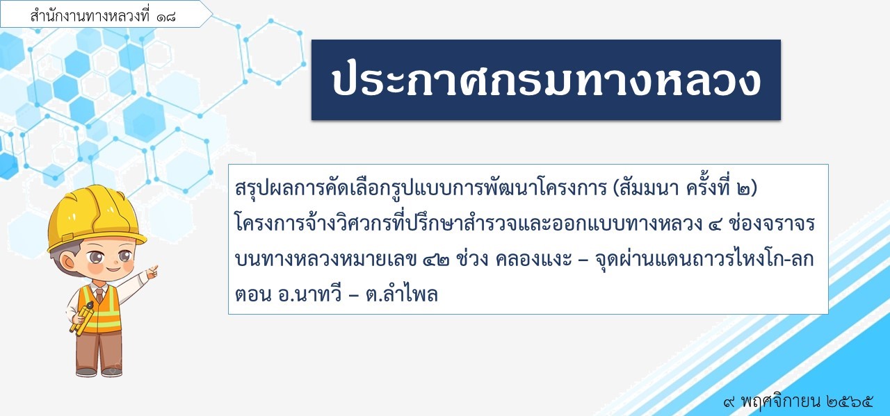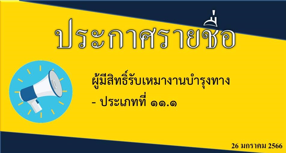 ประกาศรายชื่อผู้มีสิทธิ์รับเหมางานบำรุงทาง ประเภทที่ 11.1