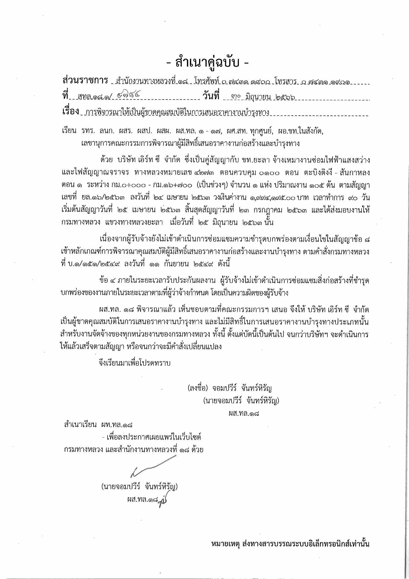 ส่งสำเนาประกาศรายชื่อผู้มีสิทธิ์รับเหมางานบำรุงทาง ประเภทที่ 10.1