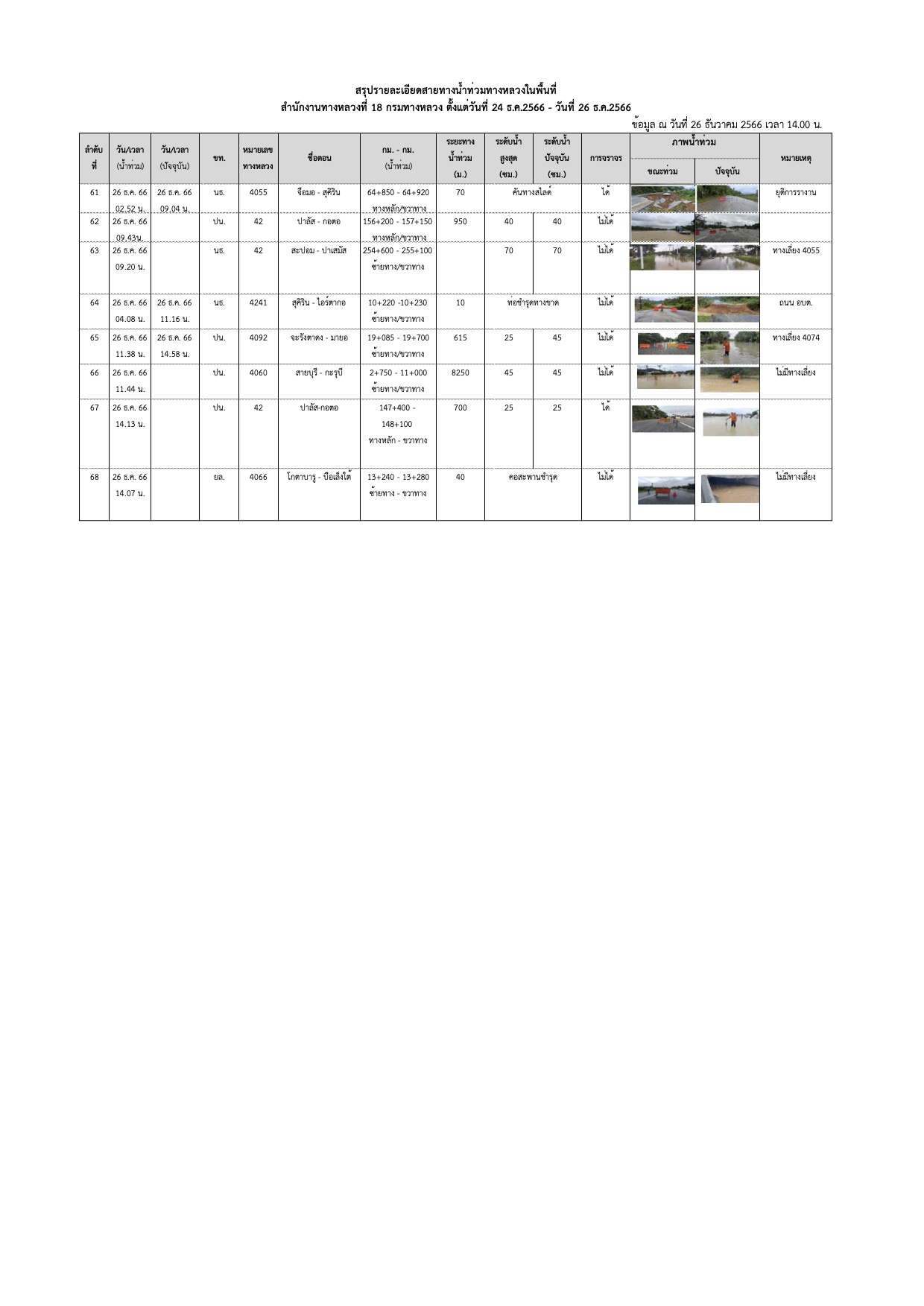 รายงานสถานการณ์น้ำท่วม วันที่ 26 ธันวาคม 2566 เวลา 12.30 น.