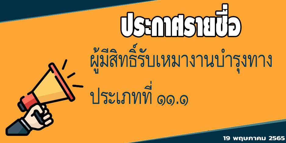 ประกาศรายชื่อผู้มีสิทธิ์รับเหมางานบำรุงทาง ประเภทที่ ๑๑.๑