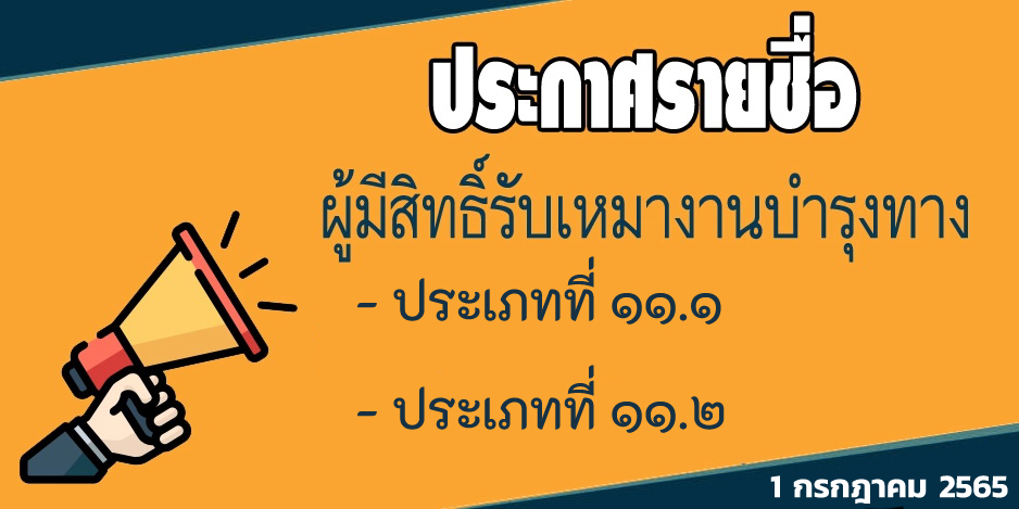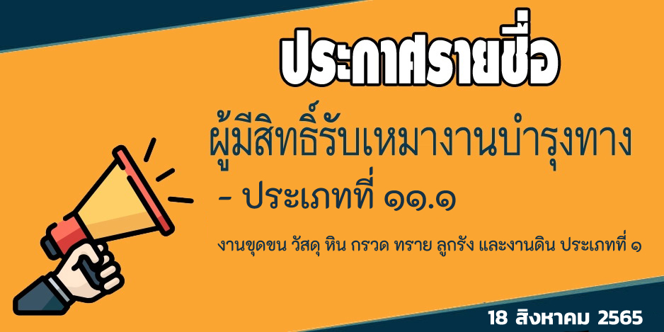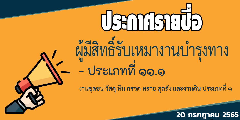 ประกาศรายชื่อผู้มีสิทธิ์รับเหมางานบำรุงทาง ประเภทที่ ๑๑.๑ และ ประเภทที่ ๑๑.๒