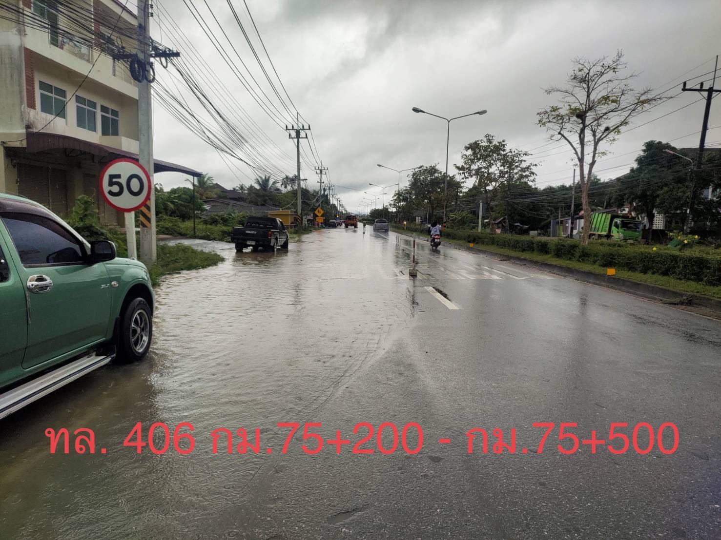 รายงานน้ำท่วม ทางหลวงหมายเลข 406 ตอน ค่ายรวมมิตร - คลองขุด ช่วง กม.75+200 -กม.75+500 ด้ายขวาทาง