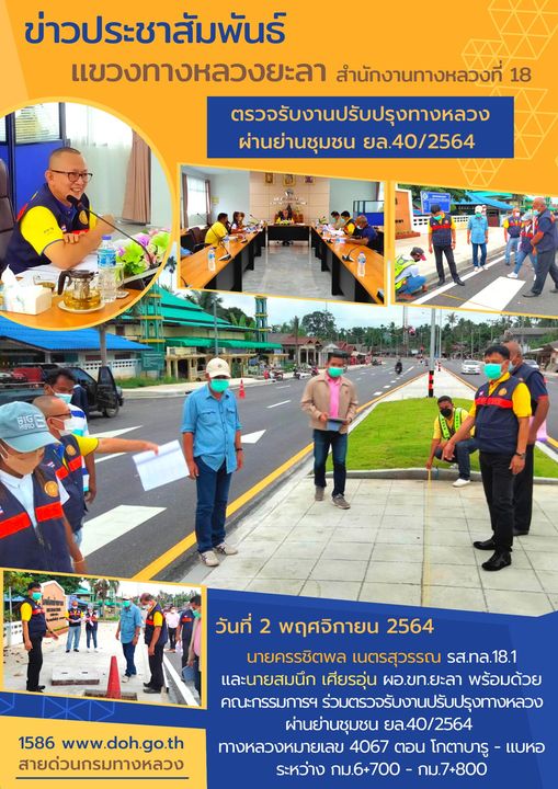 ตรวจรับงานปรับปรุงทางหลวงผ่านย่านชุมชน ทล.4067 ตอน โกตาบารู - แบหอ