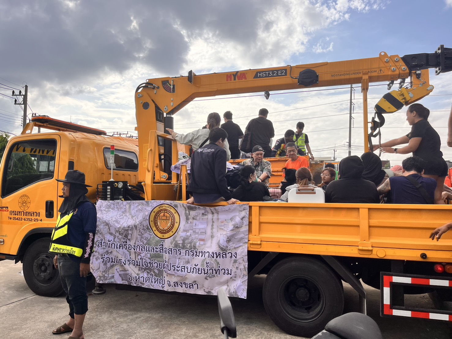 กรมทางหลวง กรมทางหลวง นำโดยเจ้าหน้าที่ ได้ให้การช่วยเหลือประชาชนโดยการรับส่งจากมณฑลทหารบกที่ 42 ไปส่งยังศูนย์พักพิงมหาวิทยาลัยสงขลานครินทร์วิทยาเขตหาดใหญ่