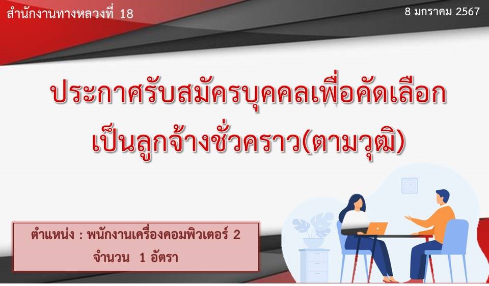 ประกาศรับสมัครบุคคลเพื่อคัดเลือก เป็นลูกจ้างชั่วคราว(ตามวุฒิ) ตำแหน่ง : พนักงานเครื่องคอมพิวเตอร์ 2