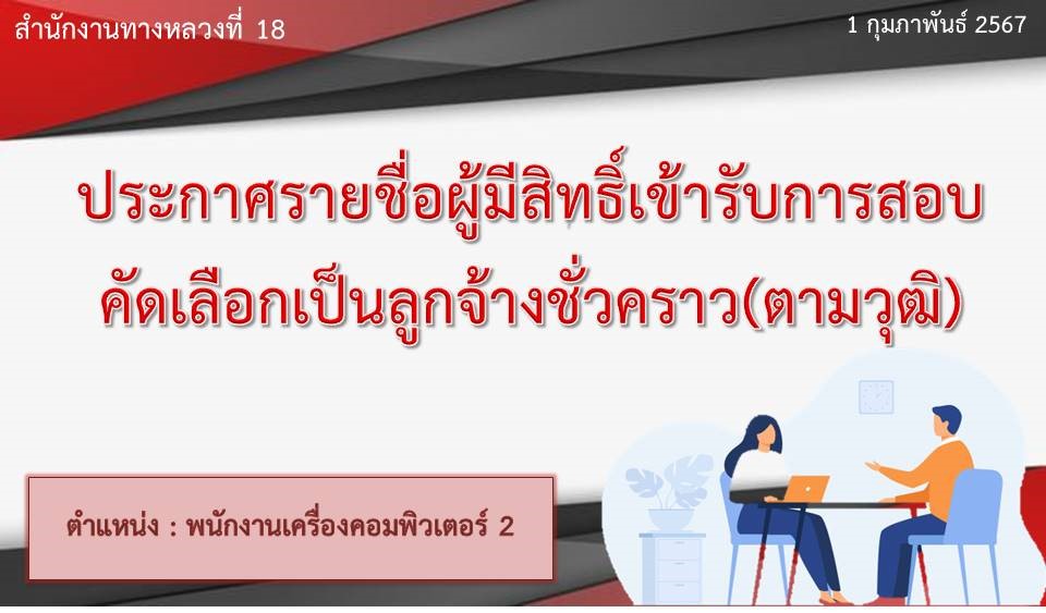 ประกาศรายชื่อผู้มีสิทธิ์เข้ารับการสอบคัดเลือกลูกจ้างชั่วคราว (ตามวุฒิ) ตำแหน่ง : พนักงานเครื่องคอมพิวเตอร์