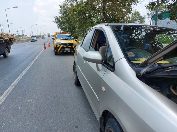บริเวณทางหลวงหมายเลข 414 ถนนลพบุรีราเมศว์ จอดเสียสายพานหน้าเครื่องขาดชำรุดและได้ทำการเปลี่ยนใหม่