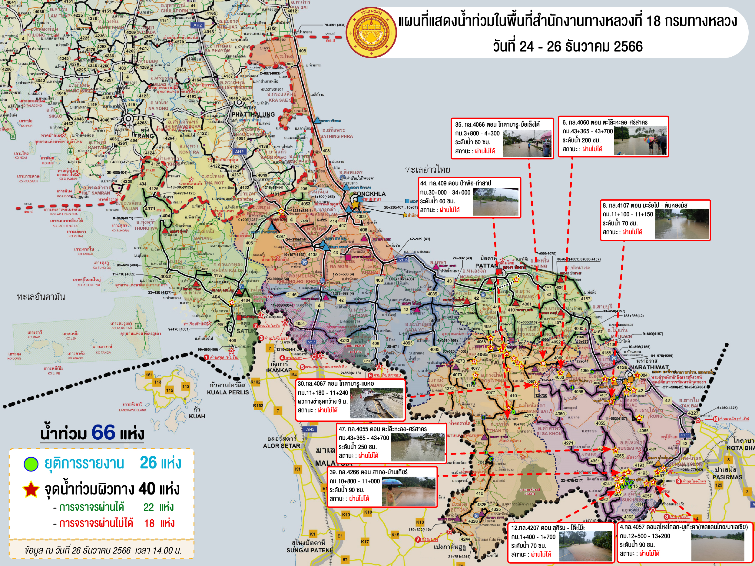 รายงานสถานการณ์น้ำท่วมวันที่ 26 ธันวาคม พ.ศ. 2566 เวลา 14.00 น.