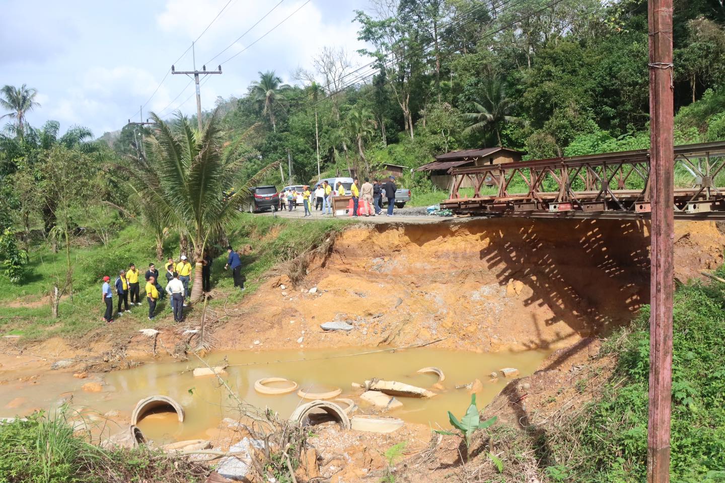 วันที่ 8 มกราคม 2567 เวลา 13.30 น. นายจิระพงศ์ เทพพิทักษ์ รองอธิบดีกรมทางหลวง ฝ่ายบำรุงทาง พร้อมด้วย นายจอมปวีร์ จันทร์หิรัญ ผู้อำนวยการสำนักงานทางหลวงที่ 18 และคณะ ลงพื้นที่ติดตามปัญหาบริเวณทางหลวงหมายเลข 4241 ตอนควบคุม 0100 ตอน สุคิริน - ไอร์ตากอ ช่วง กม.10+220 ถึง กม.10+230 เนื่องจากได้รับความเสียหายจากฝนตกหนักติดต่อกันเป็นเวลาหลายวัน เกิดน้ำท่วมและน้ำป่าไหลหลาก ส่งผลให้ถนนถูกกัดเซาะได้รับความเสียหาย ประชาชนในพื้นที่ไม่สามารถสัญจรไปมาได้ จากสถานการณ์ฝนตกหนักอย่างต่อเนื่อง ตั้งแต่ 24 ธันวาคม 2566 - 4 มกราคม 2567 ที่ผ่านมา โดยมีนายสมัคร เลือดวงหัด ผู้อำนวยการแขวงทางหลวงนราธิวาส รายงานสรุปการดำเนินงานวิธีการแก้ไขปัญหาดังกล่าว ซึ่งในขณะนี้ได้ติดตั้งสะพานเบลีย์ให้ประชาชนใช้เส้นทางเป็นการชั่วคราว
