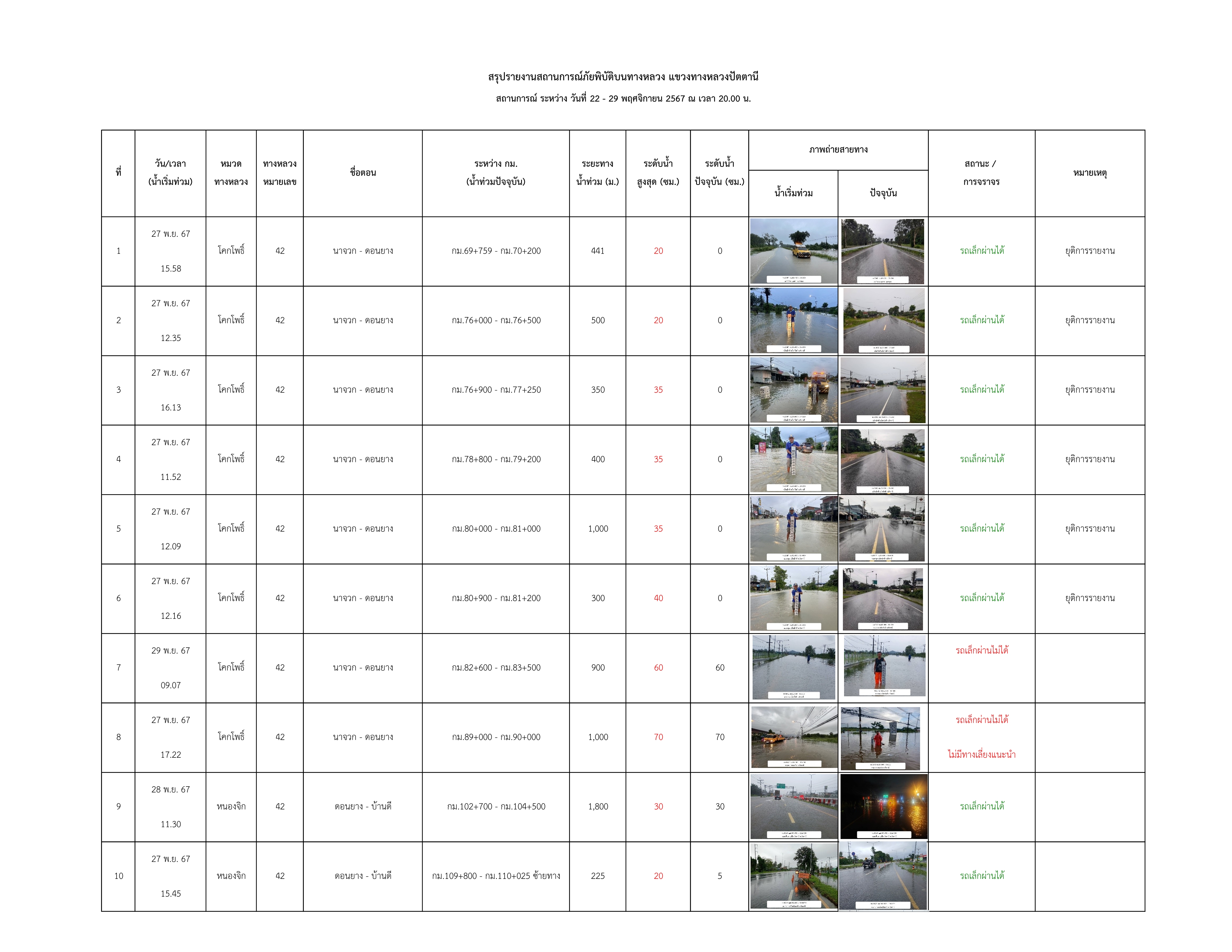 รายงานสถานการณ์น้ำท่วมในพื้นที่แขวงทางหลวงปัตตานี