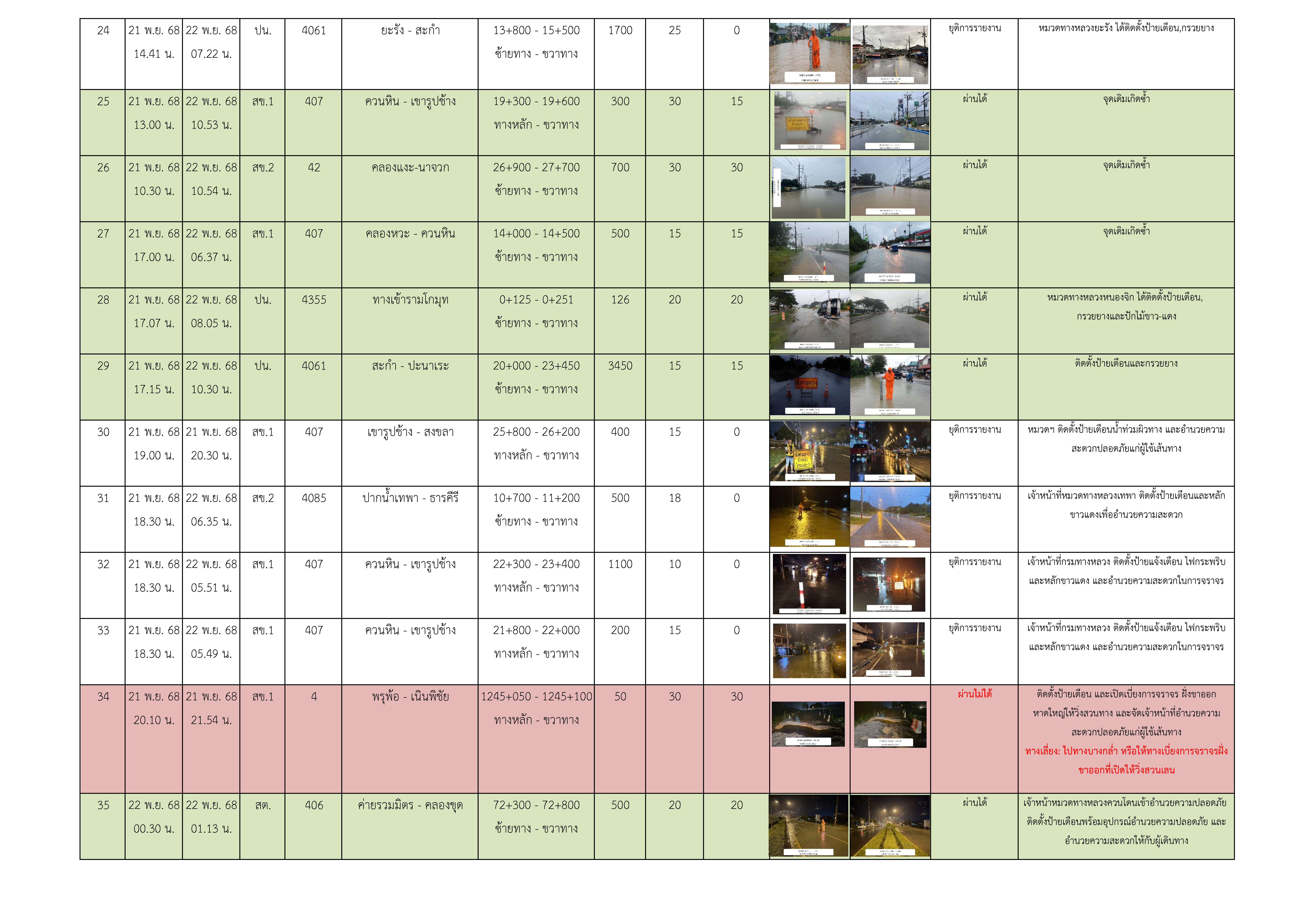 รายงานน้ำท่วมในระหว่างวันที่ 20-22 พ.ย. 68 ประจำวันที่ 22 พ.ย. 68 ณ เวลา 13.00 น. ตามรายงานแนบ