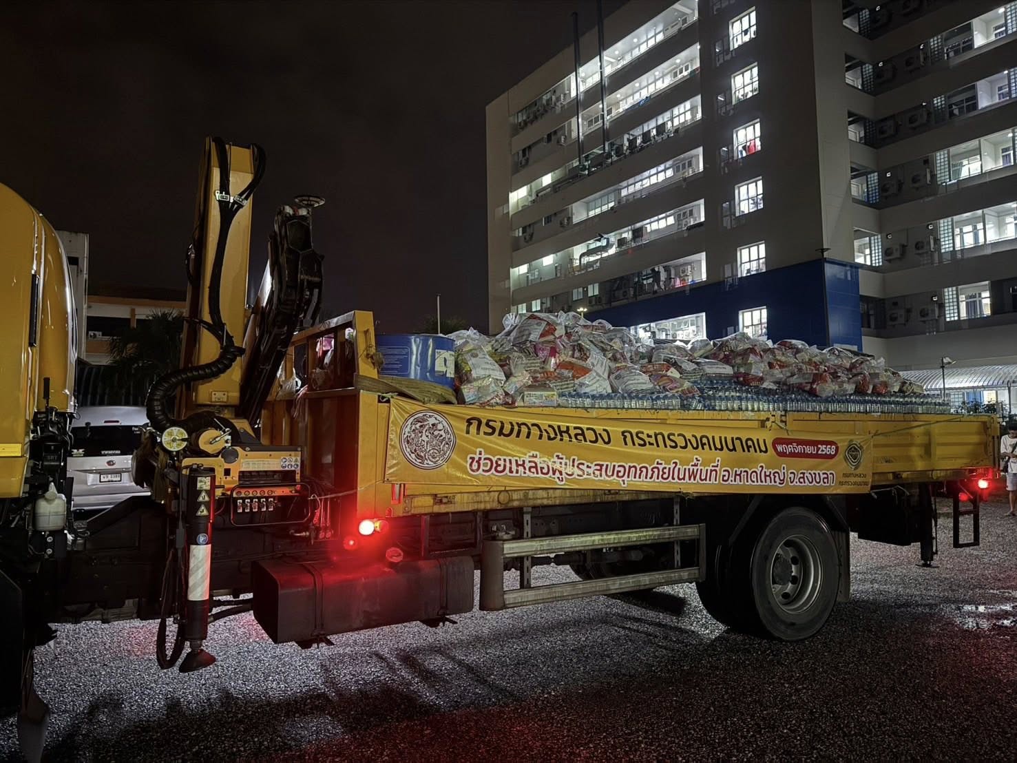 วันที่ 26 พฤศจิกายน 2568 เวลา 21.30 น. สำนักงานทางหลวงที่ 15 (ประจวบคีรีขันธ์) ได้นำน้ำดื่มและถุงยังชีพไปมอบให้แก่แขวงทางหลวงพัทลุง เพื่อที่จะได้นำไปแจกจ่ายให้กับผู้ประสบภัยน้ำท่วม เนื่องจากสถานการณ์ฝนตกหนักทำให้เกิดน้ำท่วมในจังหวัดพัทลุง