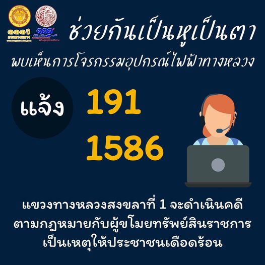 หากพบเห็นมีการลักลอบขโมยสายไฟและอุปกรณ์ไฟฟ้าโปรดแจ้ง
