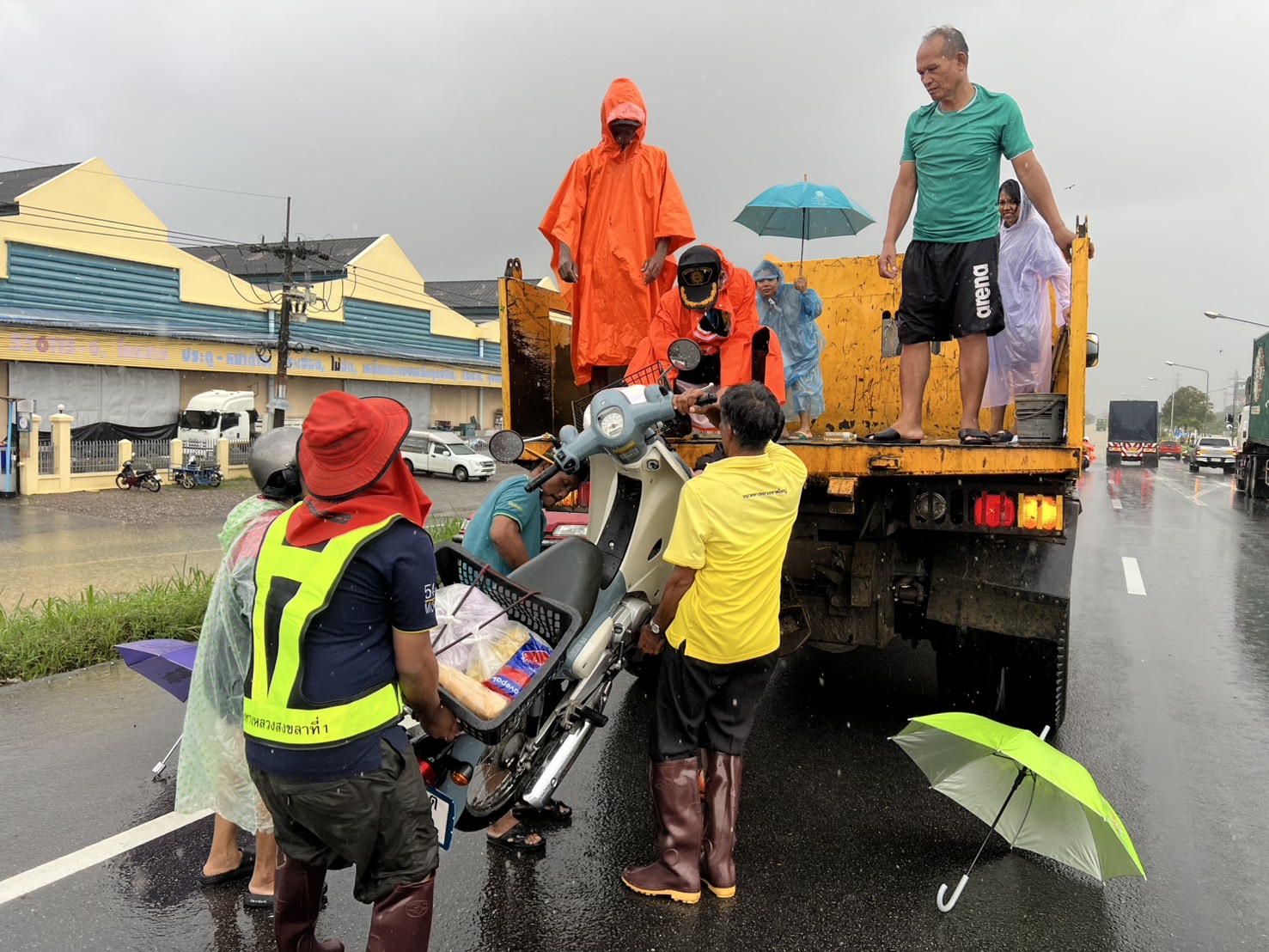 แขวงทางหลวงสงขลาที่ 1 ดำเนินการช่วยเหลือประชาชนในพื้นที่ ทางหลวงหมายเลข 4 ตอน เนินพิชัย - คลองหวะ บริเวณหน้าทางเข้า มหาวิทยาลัยหาดใหญ่ เพื่อให้สัญจรข้ามผ่านจุดบริเวณที่น้ำท่วมสูงได้ (เนื่องจากรถเล็กไม่สามารถผ่านได้)