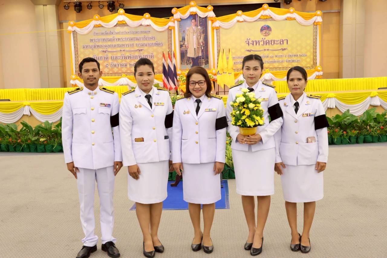 นายสมเทพ บุญกว้าง ผู้อำนวยการแขวงทางหลวงยะลา มอบหมายให้ นางสาวดวงเดือน ศรีทอง รองผู้อำนวยการ ฝ่ายบริหารงานทั่วไป ข้าราชการ พนักงานราชการ แขวงทางหลวงยะลา เข้าร่วมกิจกรรม เนื่องในวันคล้ายวันพระบรมราชสมภพพระบาทสมเด็จพระบรมชนกาธิเบศร มหาภูมิพลอดุลเดชมหาราช บรมนาถบพิตร วันชาติ และวันพ่อแห่งชาติ ๕ ธันวาคม ๒๕๖๘ โดยมี นายอำนาจ ชูทอง รองผู้ว่าราชการจังหวัดยะลา เป็นประธานในพิธี ณ หอประชุมเฉลิมพระเกียรติ ๘๐ พรรษา ๕ ธันวาคม ๒๕๕๐ มหาวิทยาลัยราชภัฏยะลา